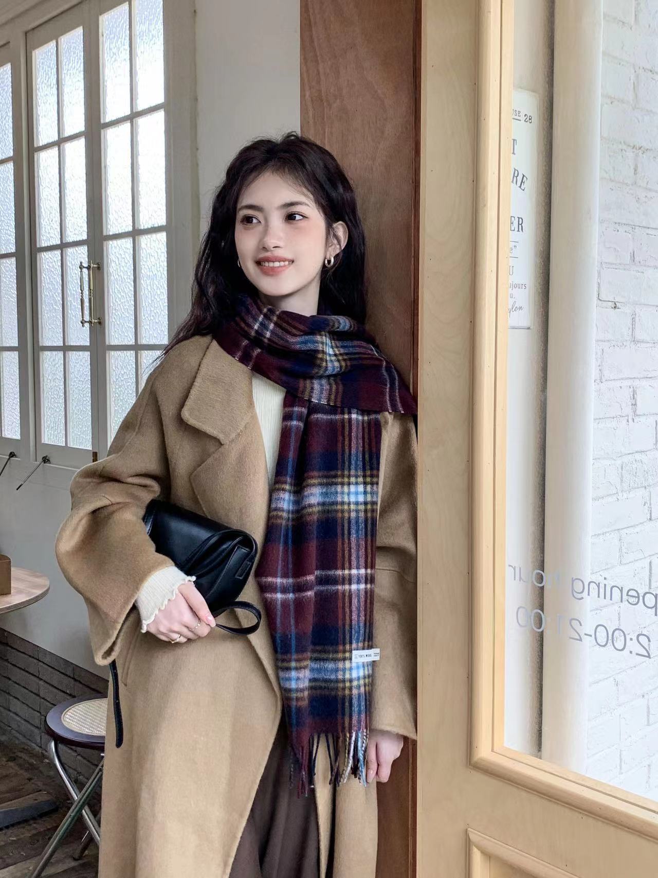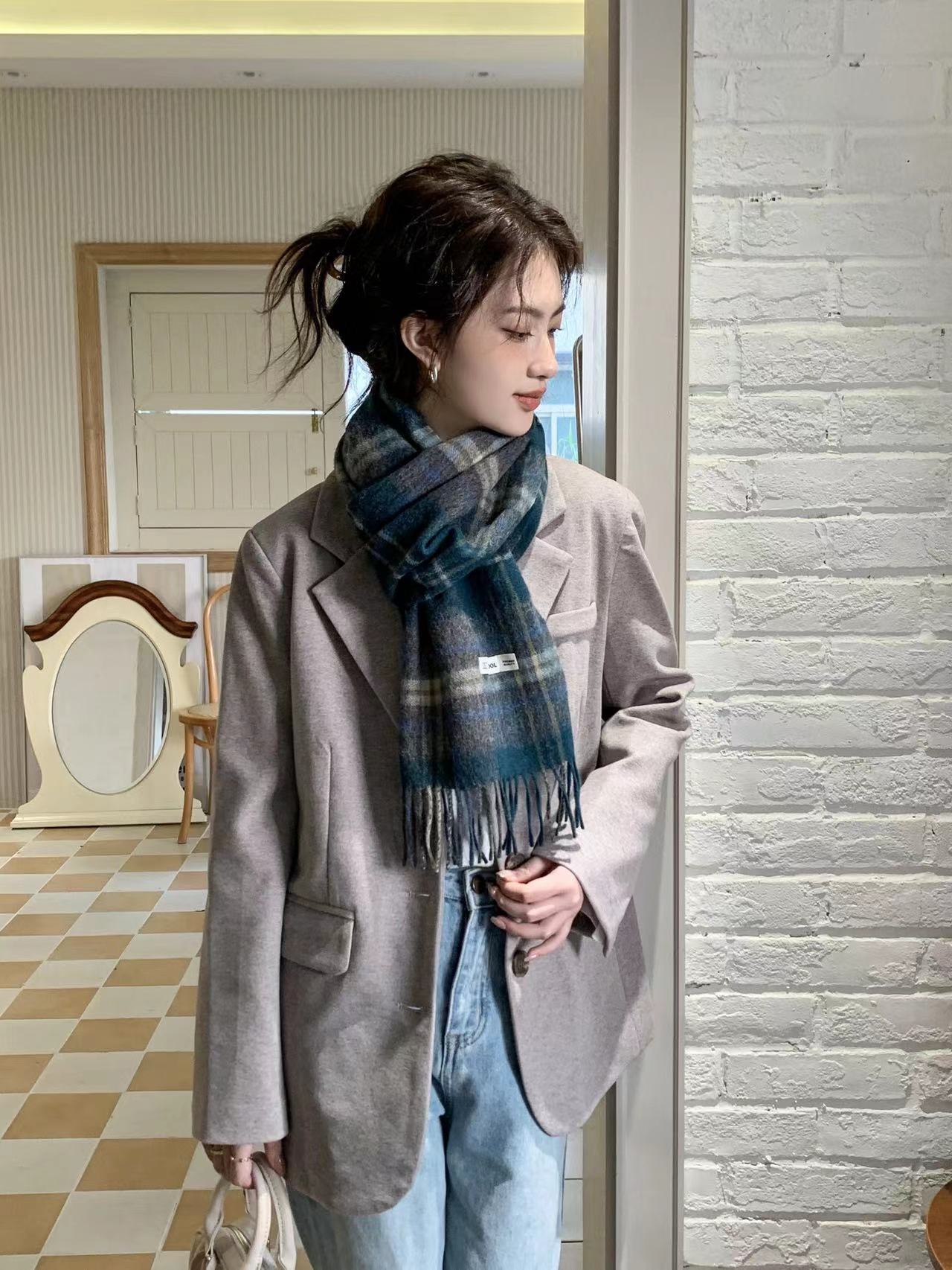 영국 100% WOOL 울 스카프 격자 무늬 그라디언트 매칭 코트 숄 가을과 겨울 분위기 따뜻한 스카프스토어 가기