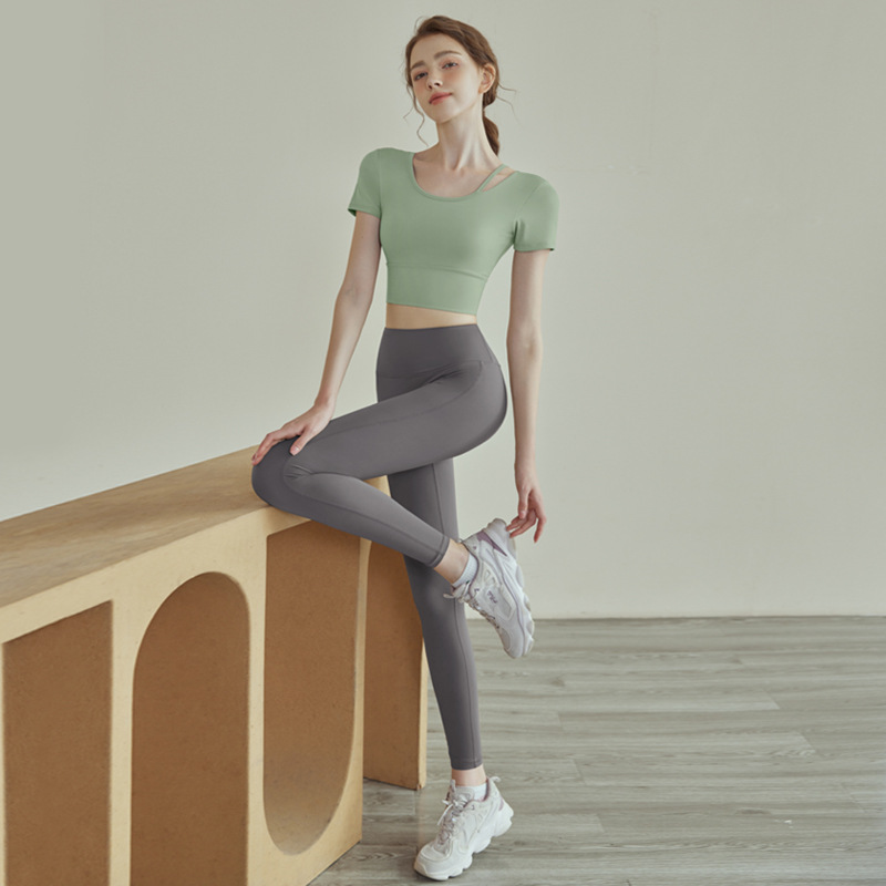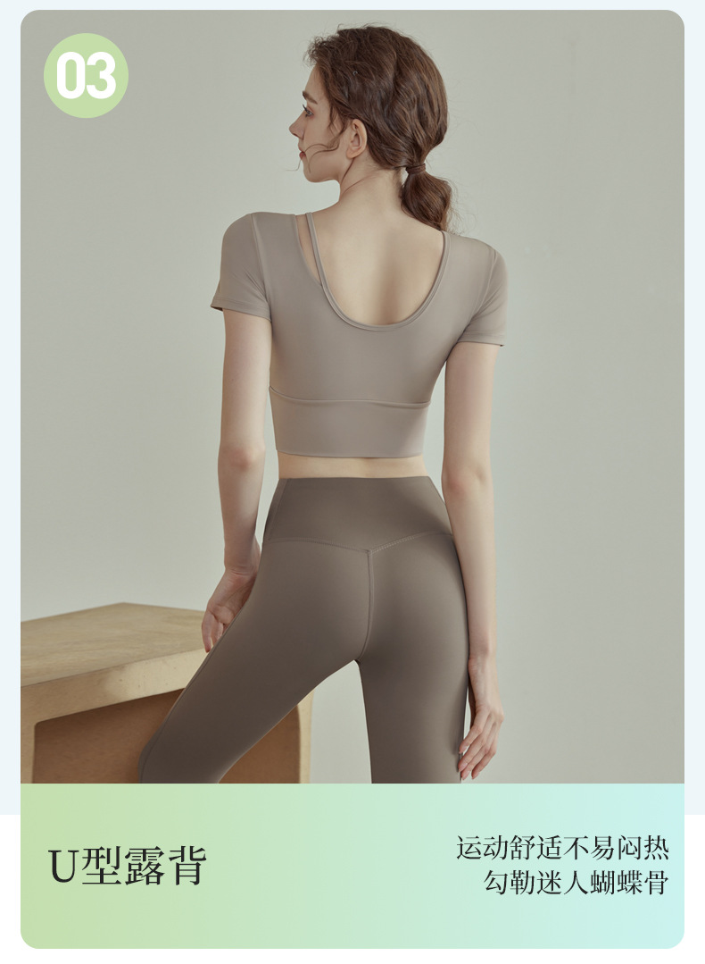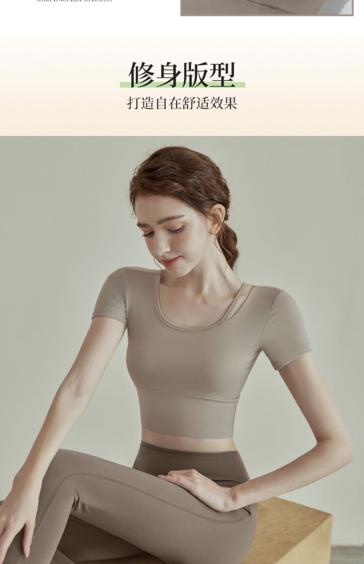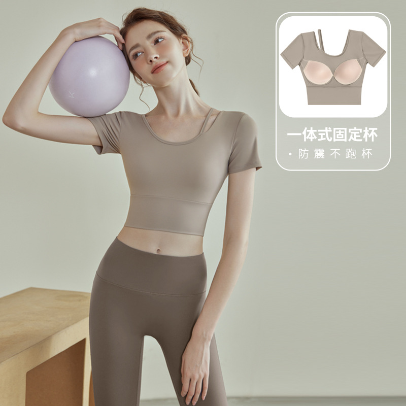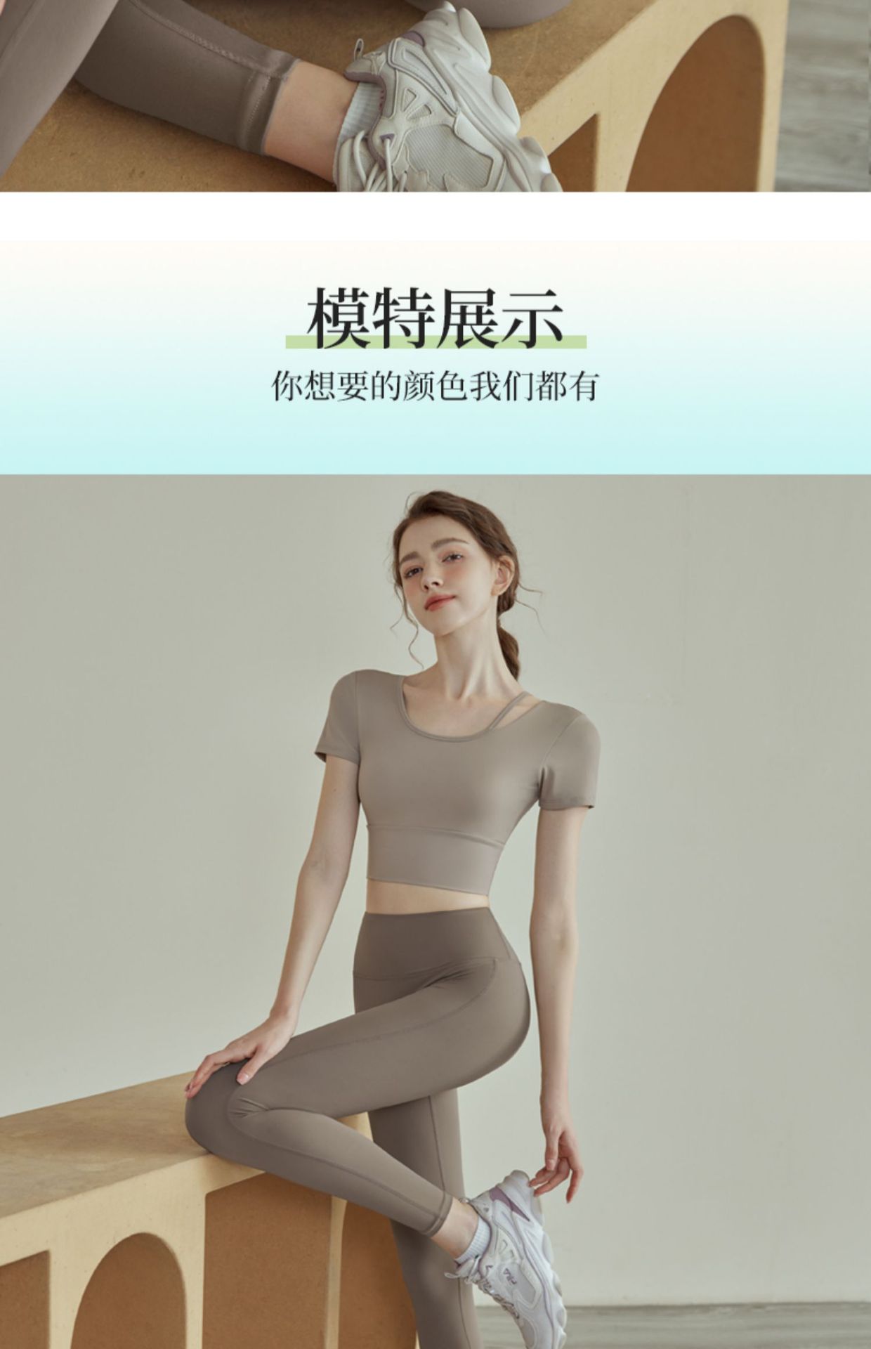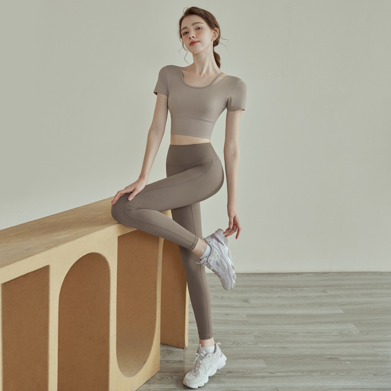 요가 의류 여성의 2024 새로운 여름 스포츠 탑 슬림 룩 피트니스 의류 필라테 훈련 의류 짧은 소매 세트