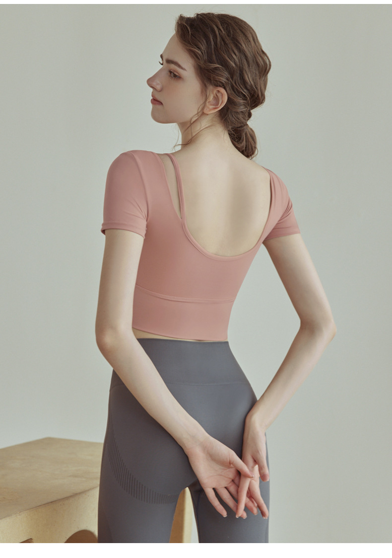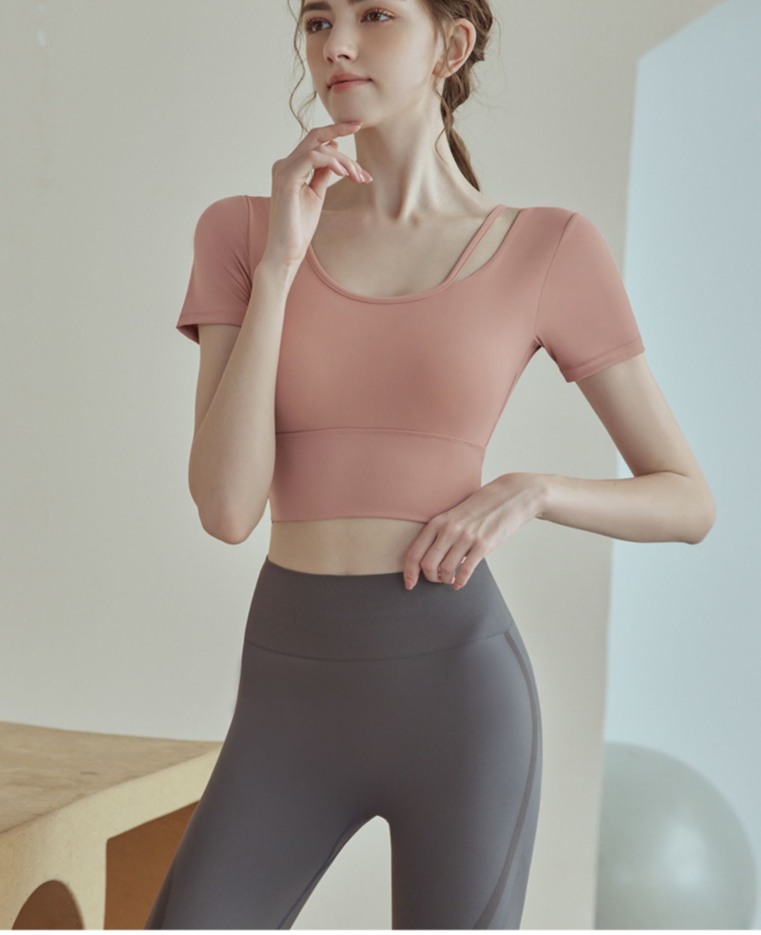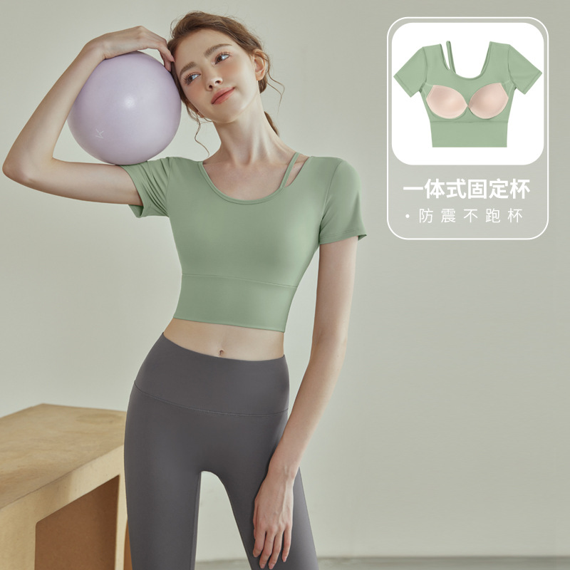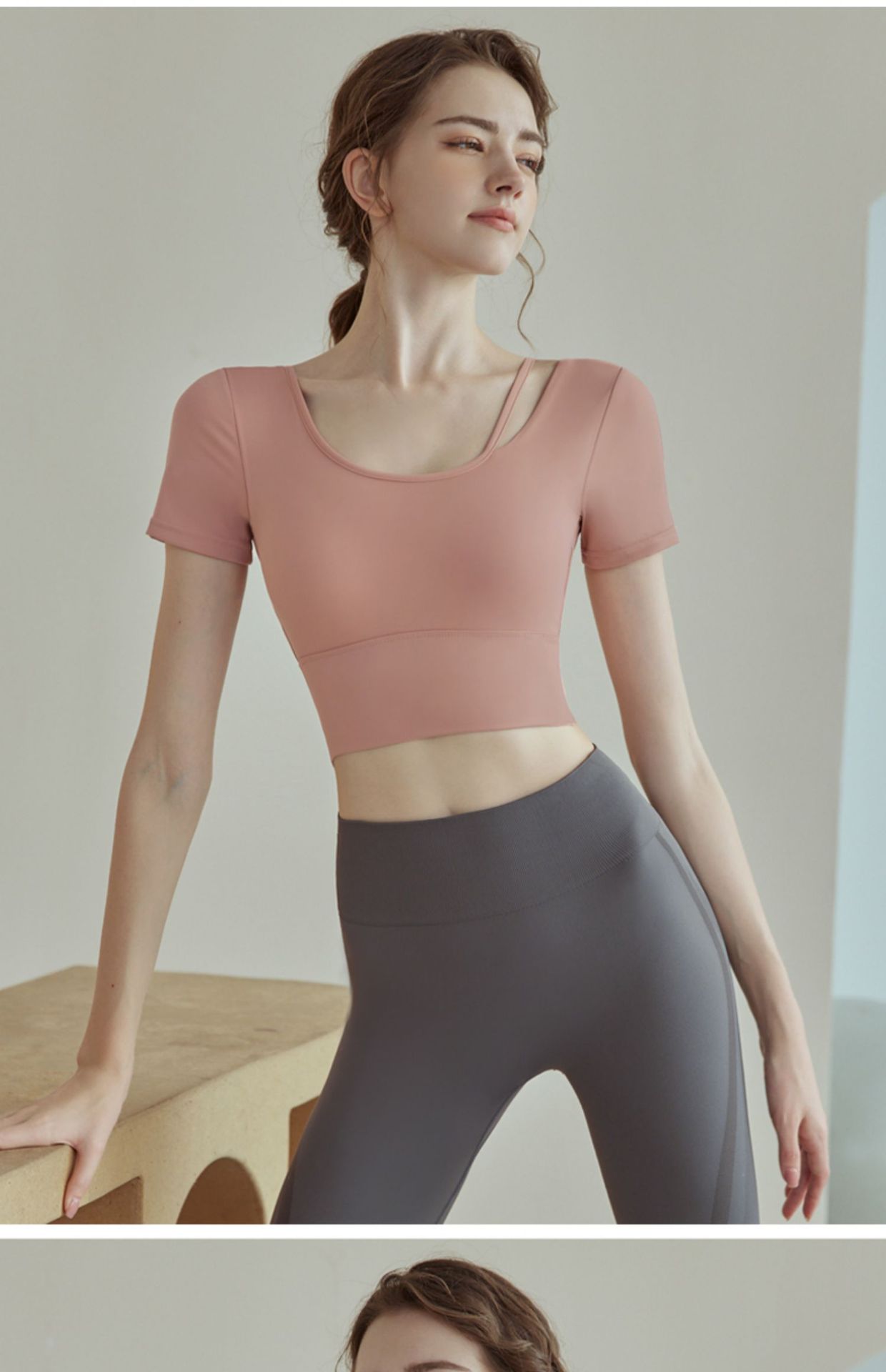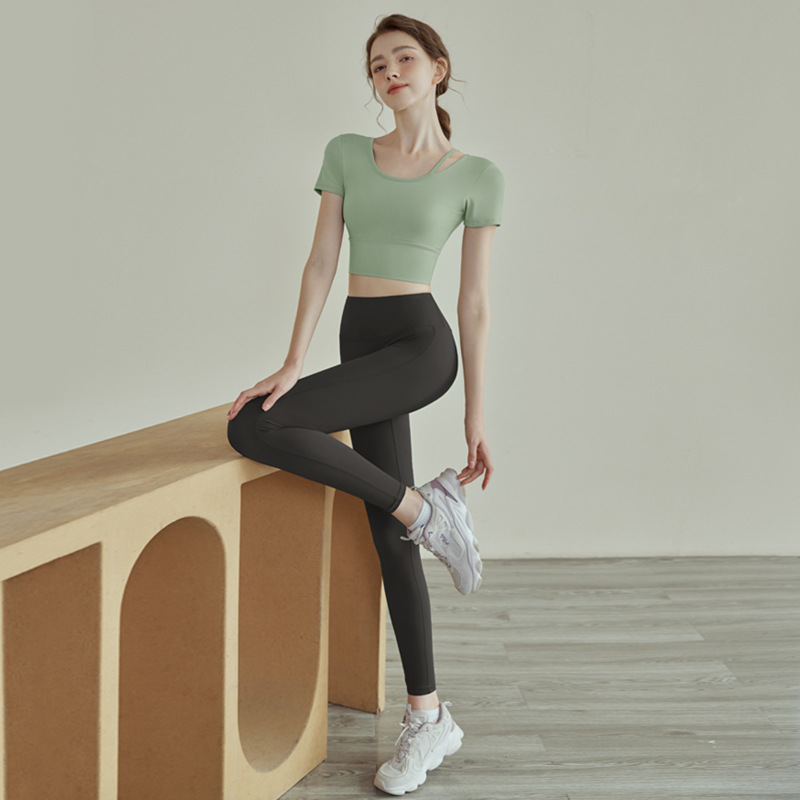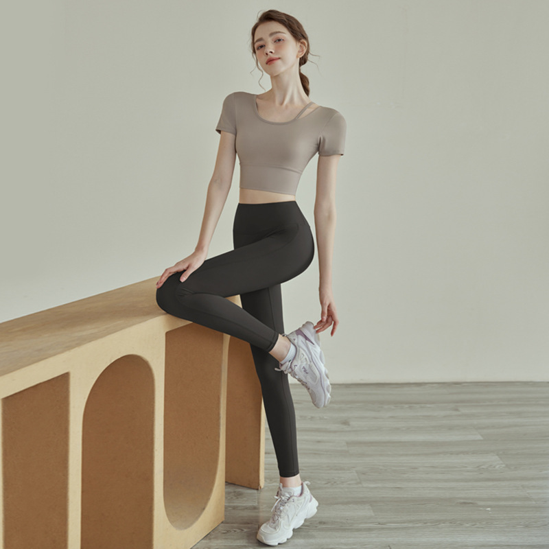 요가 의류 여성의 2024 새로운 여름 스포츠 탑 슬림 룩 피트니스 의류 필라테 훈련 의류 짧은 소매 세트
