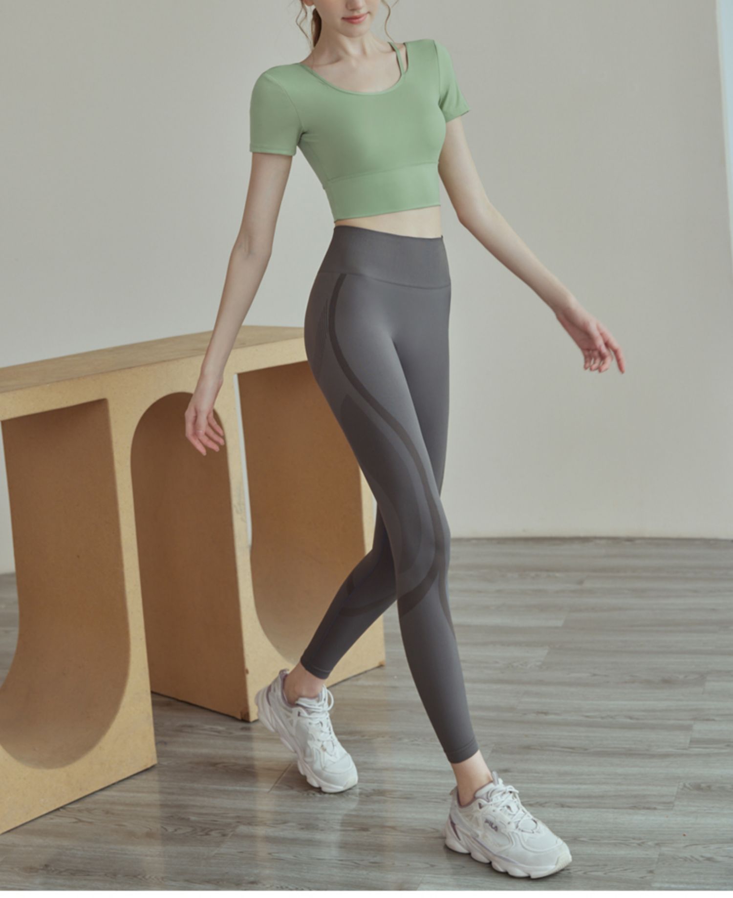 • 녹색 반팔[고정 컵 가슴 패드] + 회색 바지