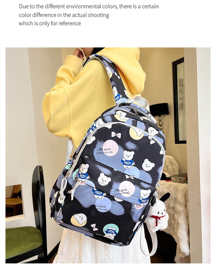 유행 높은 가치 간단한 고등학교 중학교 학생 신선한 스타일 귀여운 올 매치 인쇄 대용량 배낭