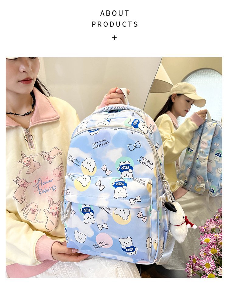 유행 높은 가치 간단한 고등학교 중학교 학생 신선한 스타일 귀여운 올 매치 인쇄 대용량 배낭스토어 가기