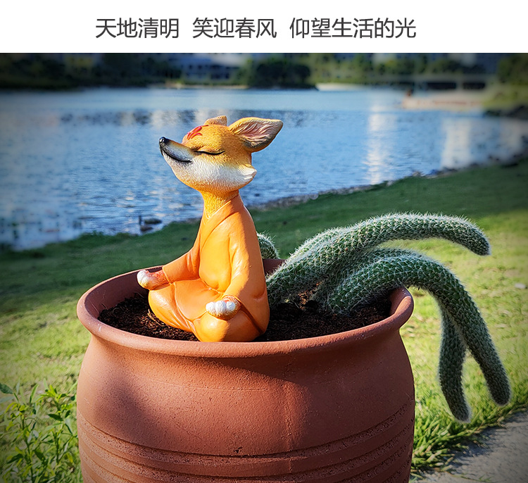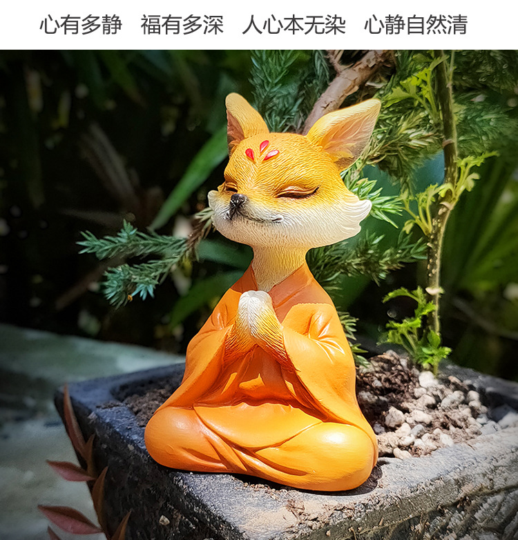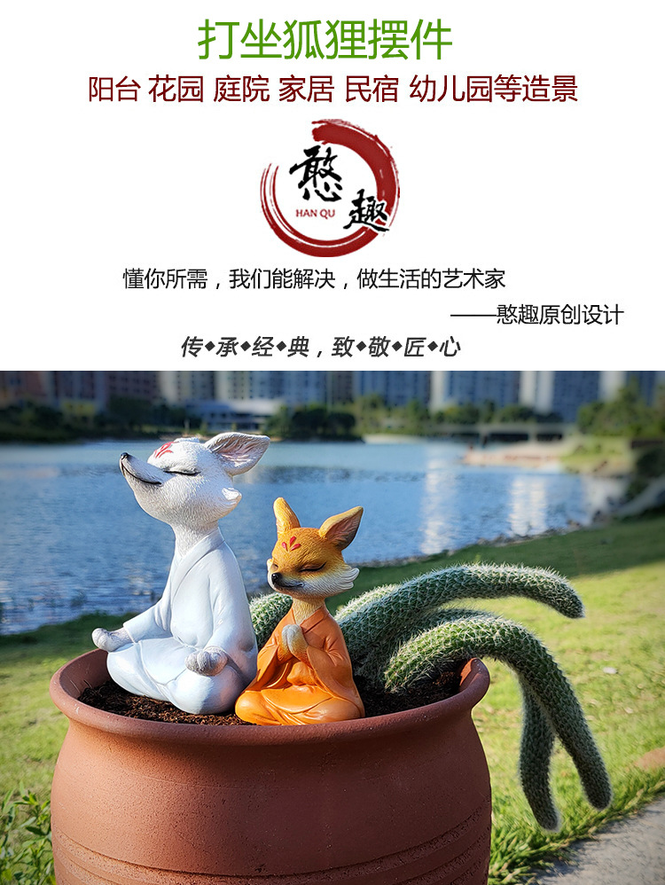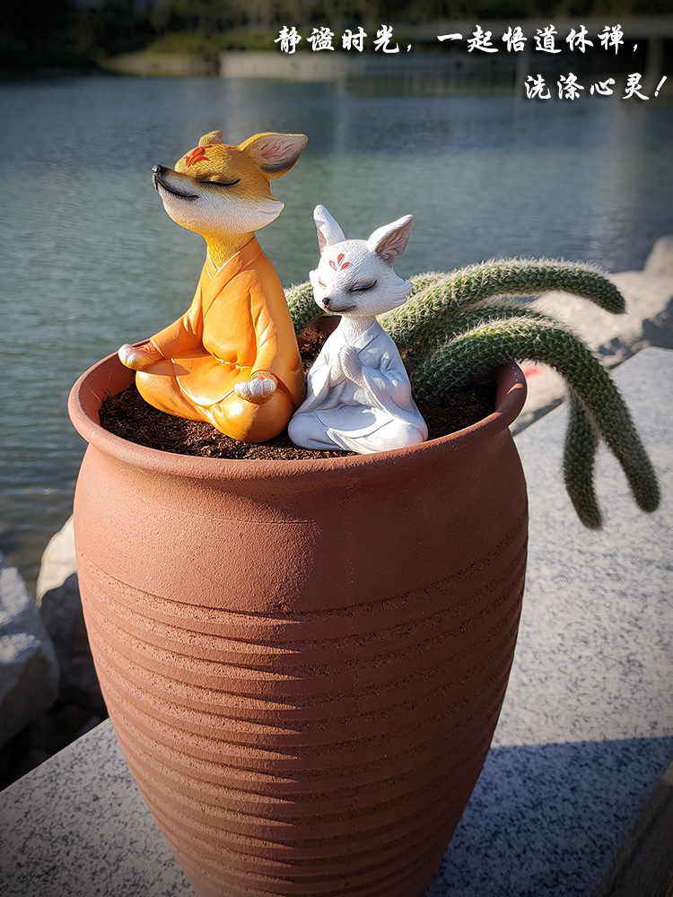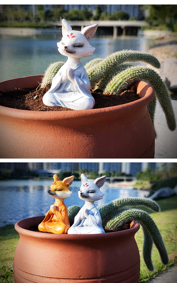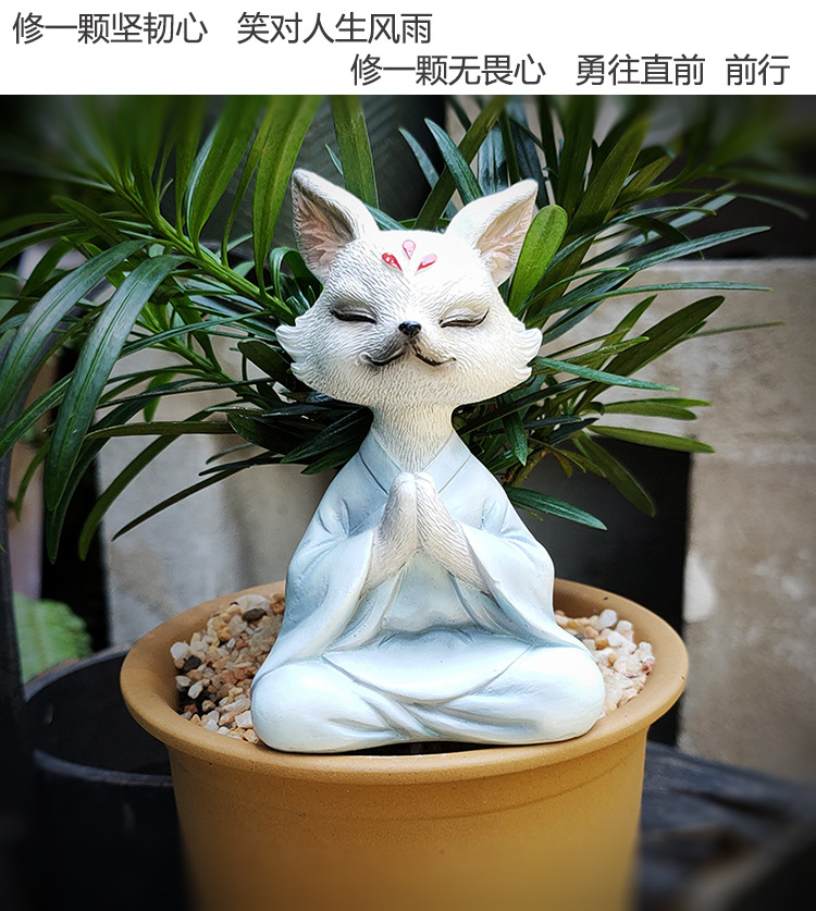 선 화이트 폭스 명상 작은 폭스 다육 분재 장식 발코니 정원 안뜰 풍경 자동차 장식 작은 장식품스토어 가기