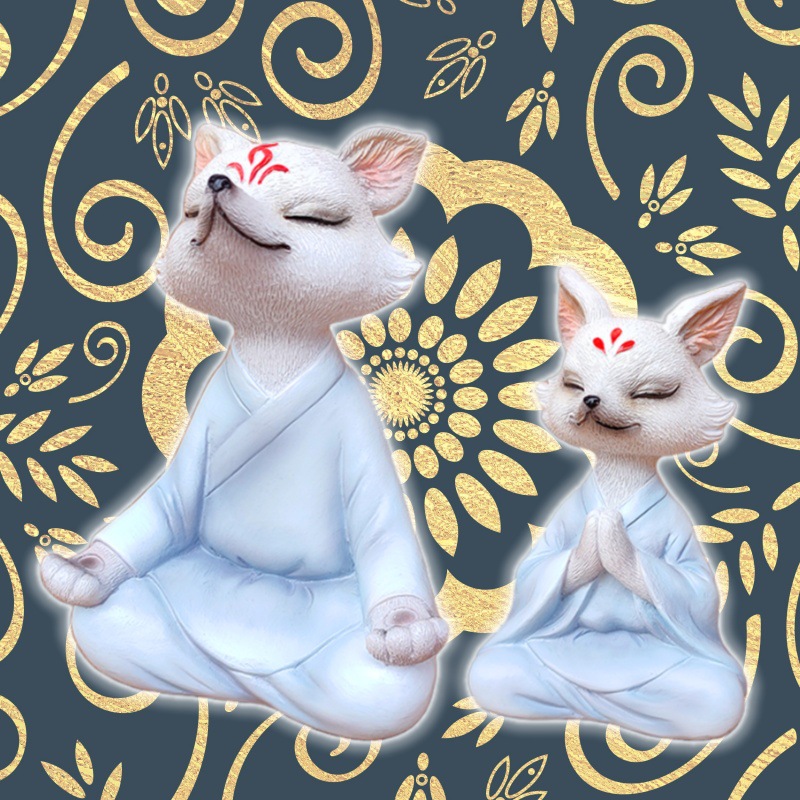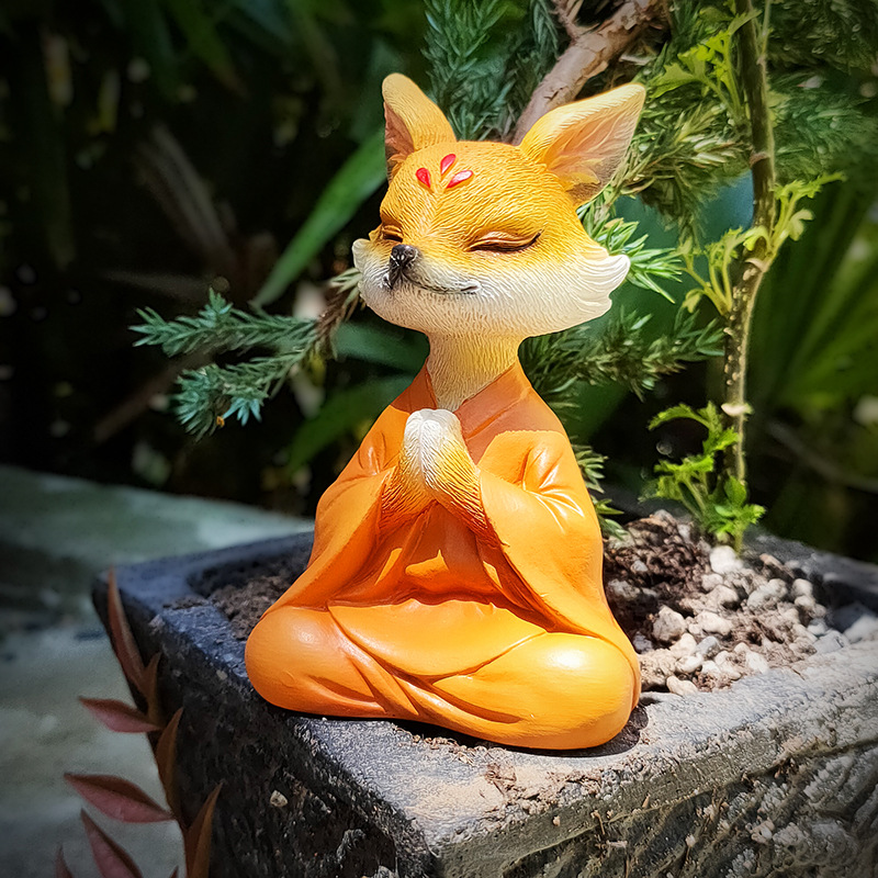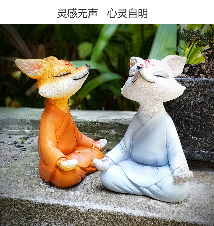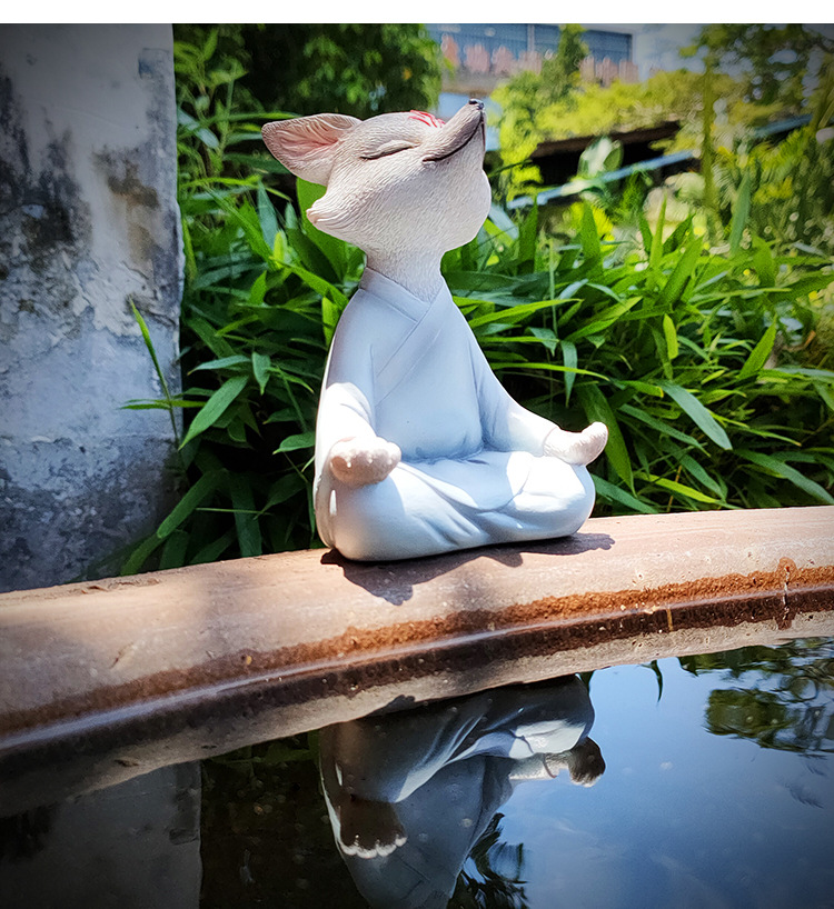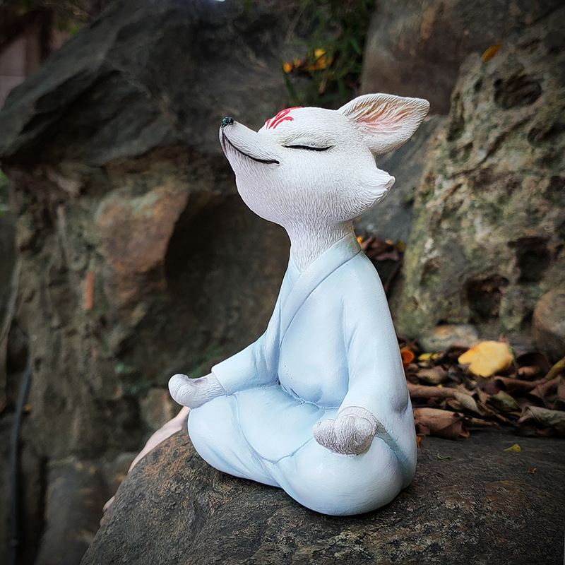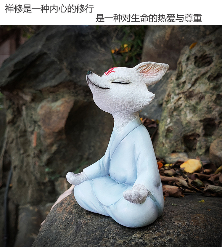 선 화이트 폭스 명상 작은 폭스 다육 분재 장식 발코니 정원 안뜰 풍경 자동차 장식 작은 장식품스토어 가기