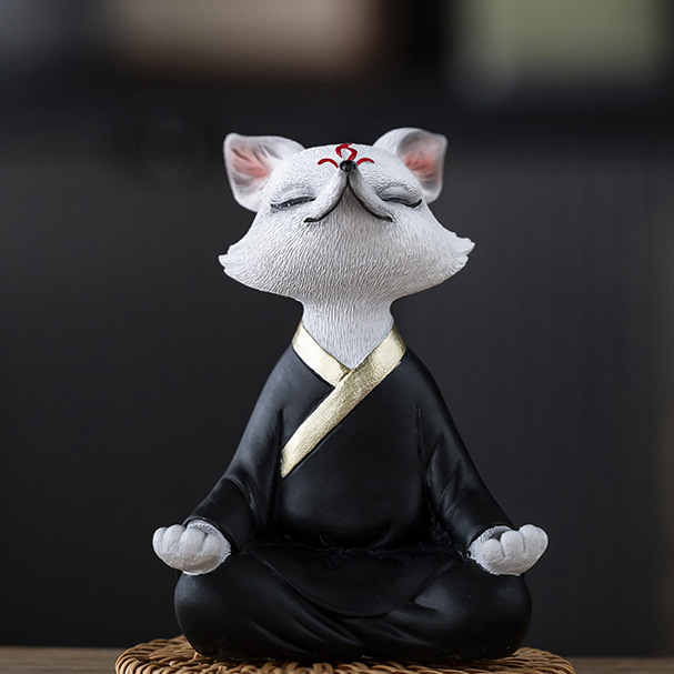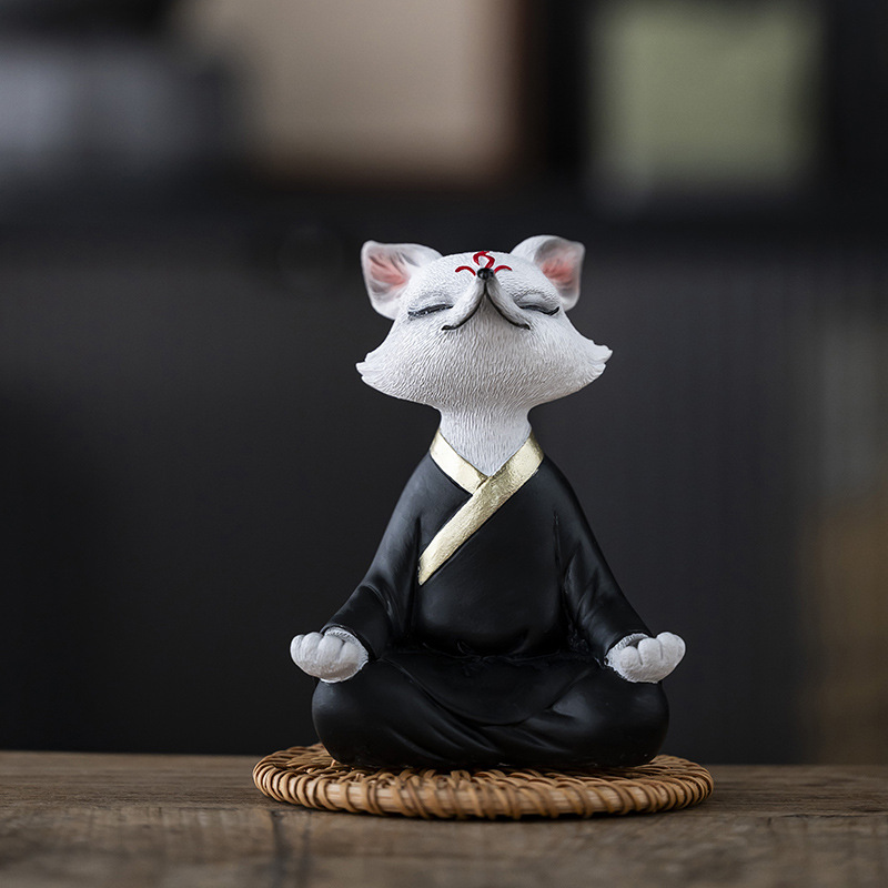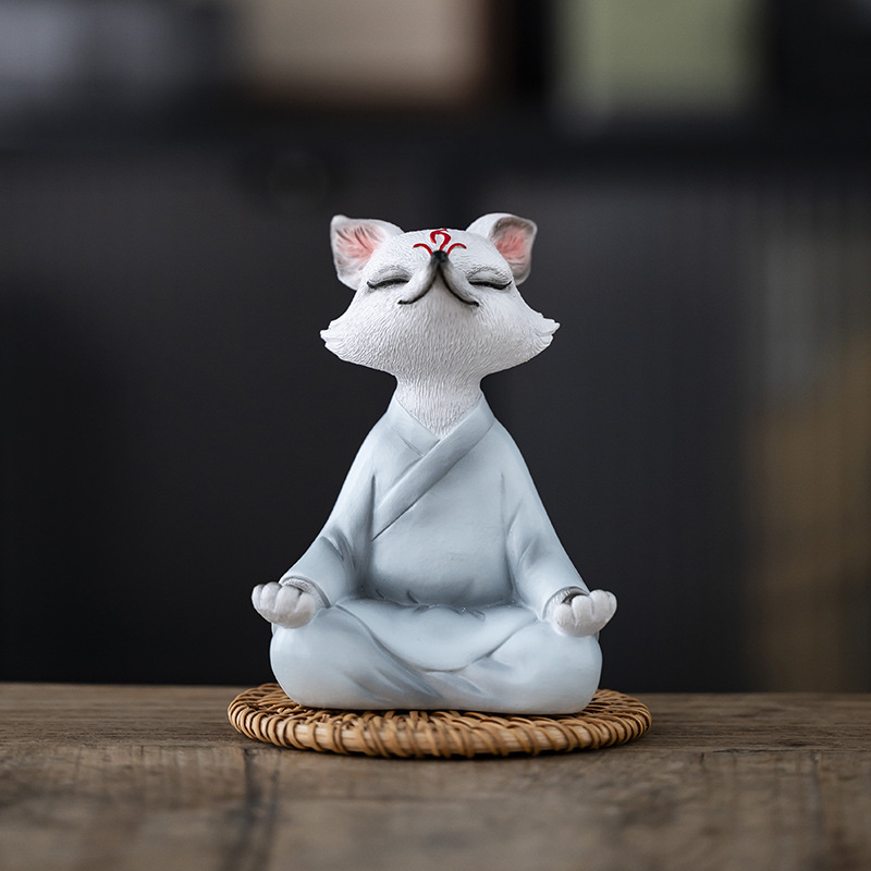 선 화이트 폭스 명상 작은 폭스 다육 분재 장식 발코니 정원 안뜰 풍경 자동차 장식 작은 장식품