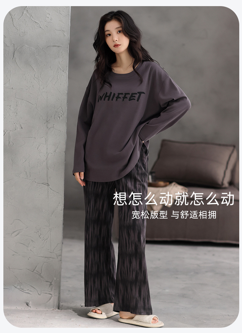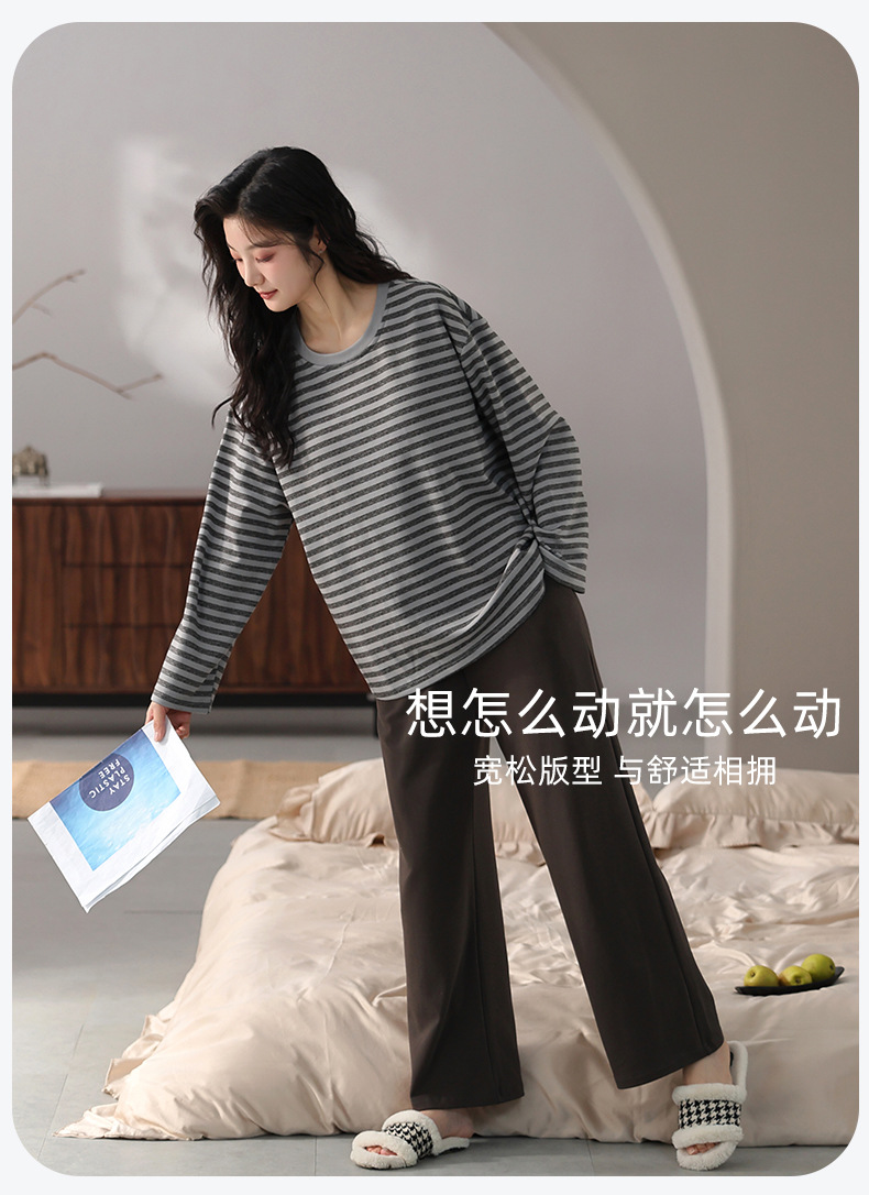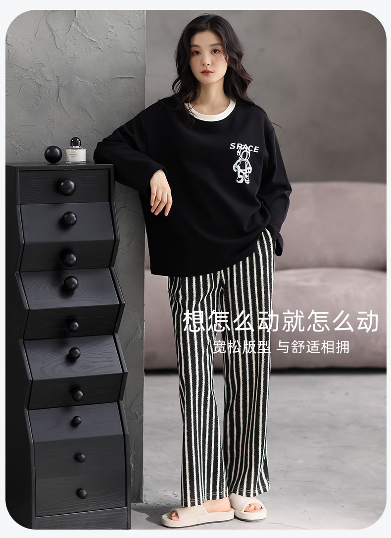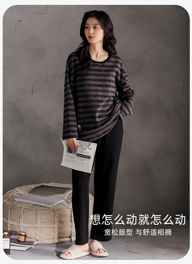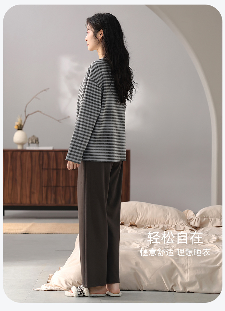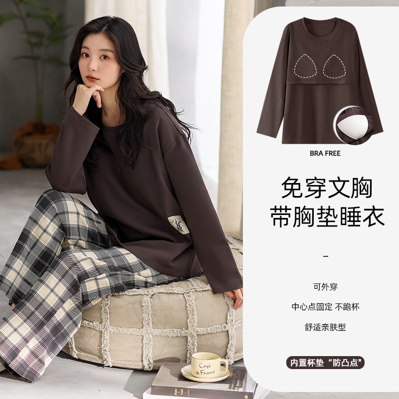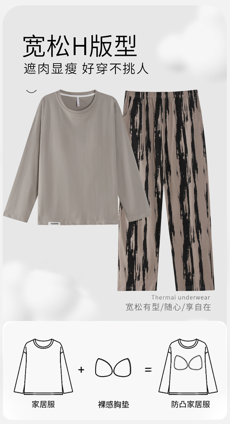 가슴 패드 잠옷 여성 가을 코튼 긴 소매 크루 넥 풀오버 간단한 캐주얼 새 홈 의류 세트 봄과 가을스토어 가기
