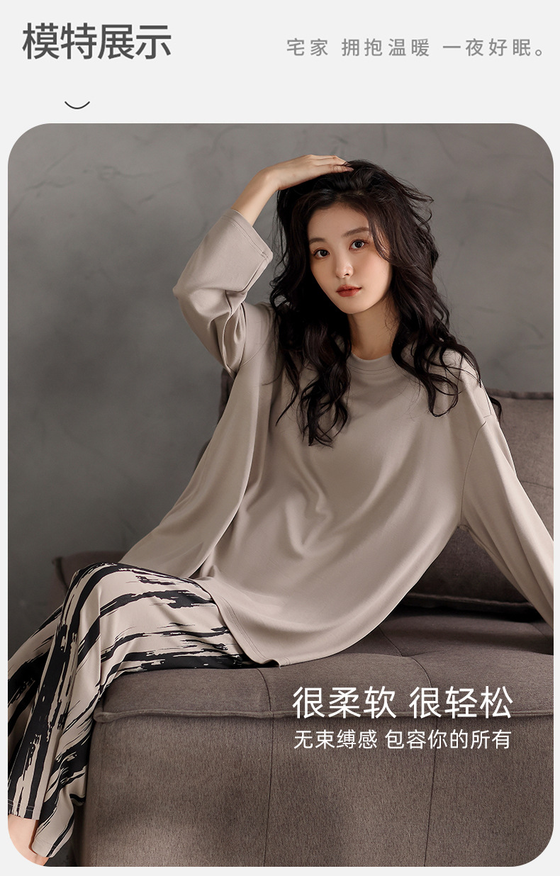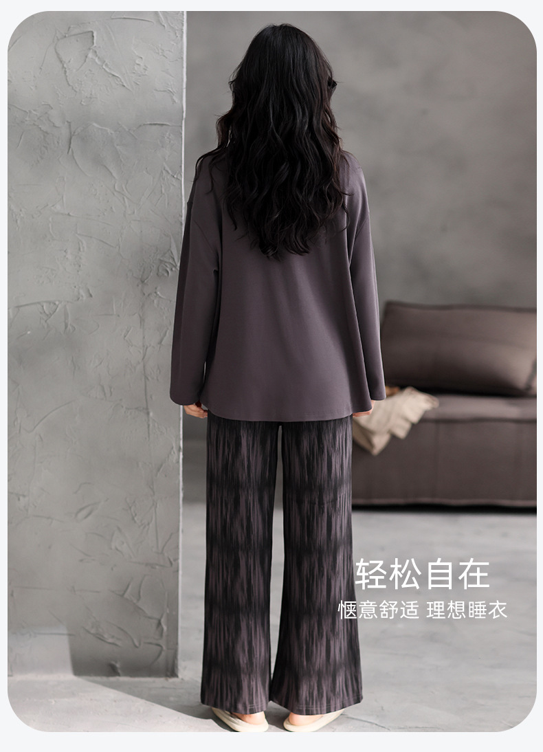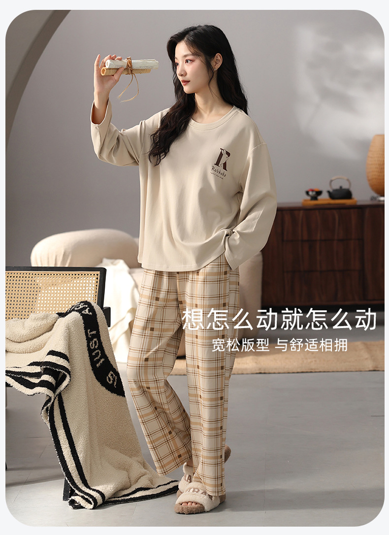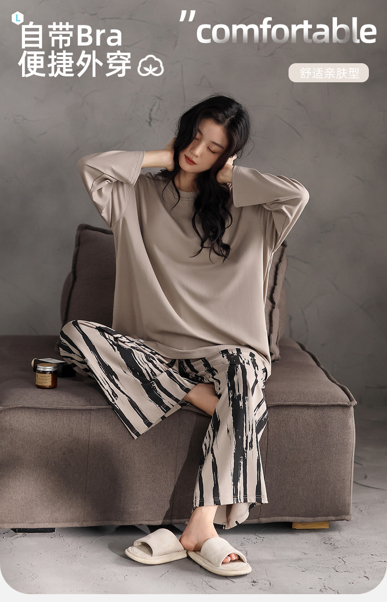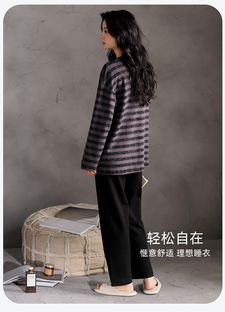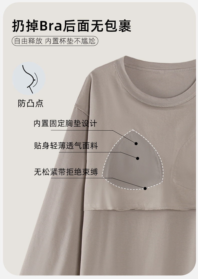가슴 패드 잠옷 여성 가을 코튼 긴 소매 크루 넥 풀오버 간단한 캐주얼 새 홈 의류 세트 봄과 가을스토어 가기