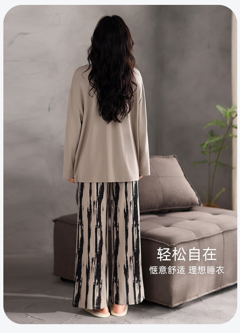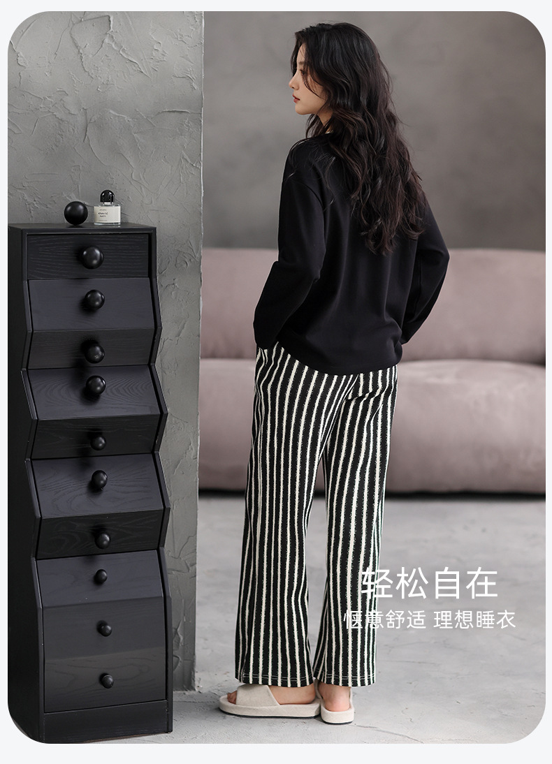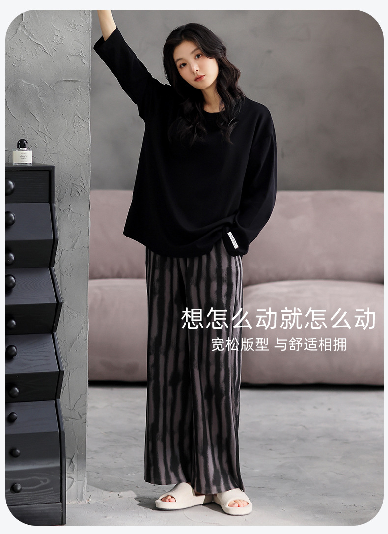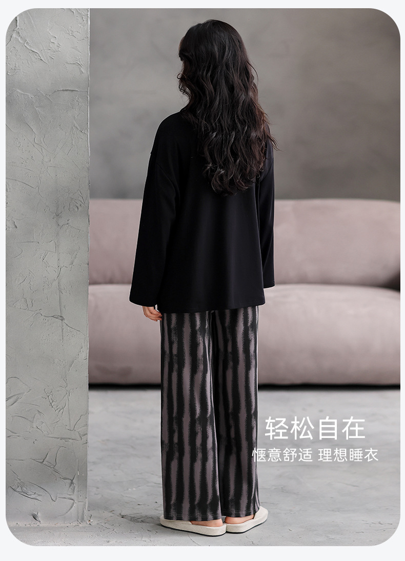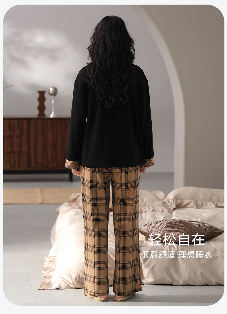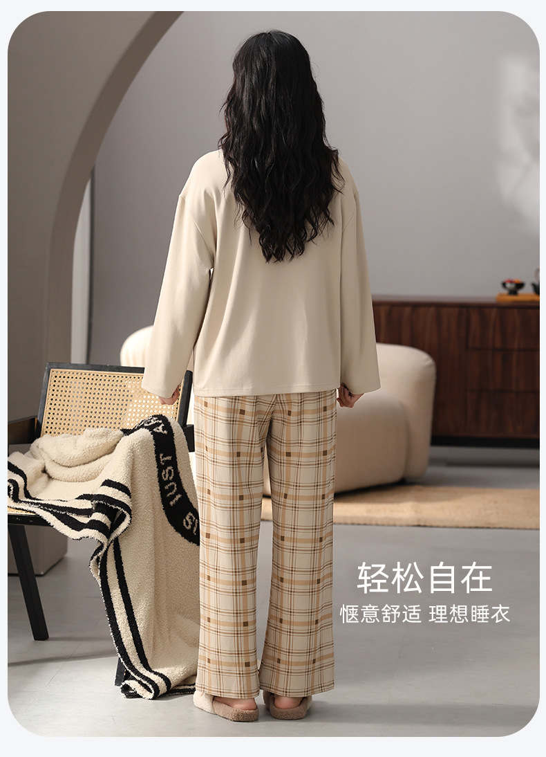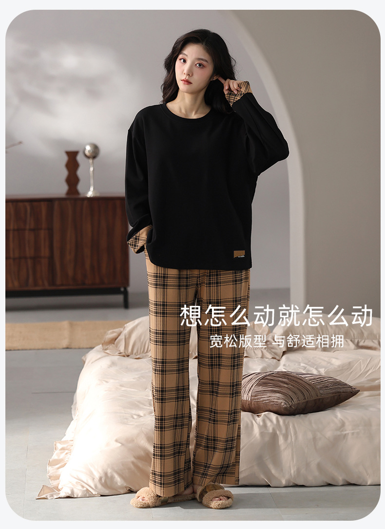 가슴 패드 잠옷 여성 가을 코튼 긴 소매 크루 넥 풀오버 간단한 캐주얼 새 홈 의류 세트 봄과 가을스토어 가기