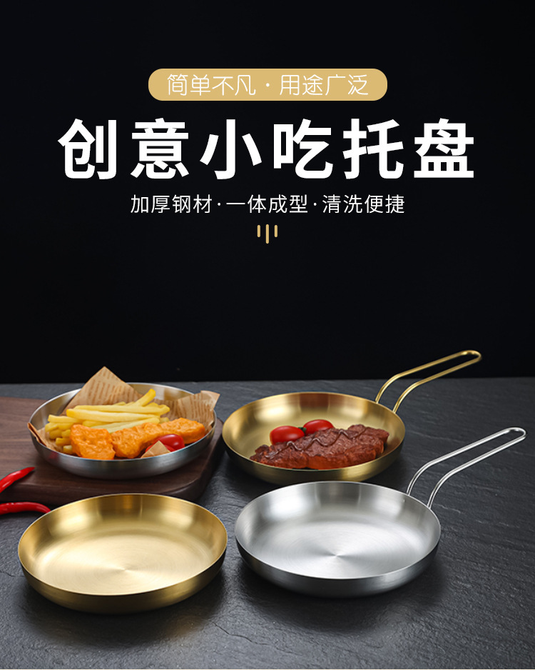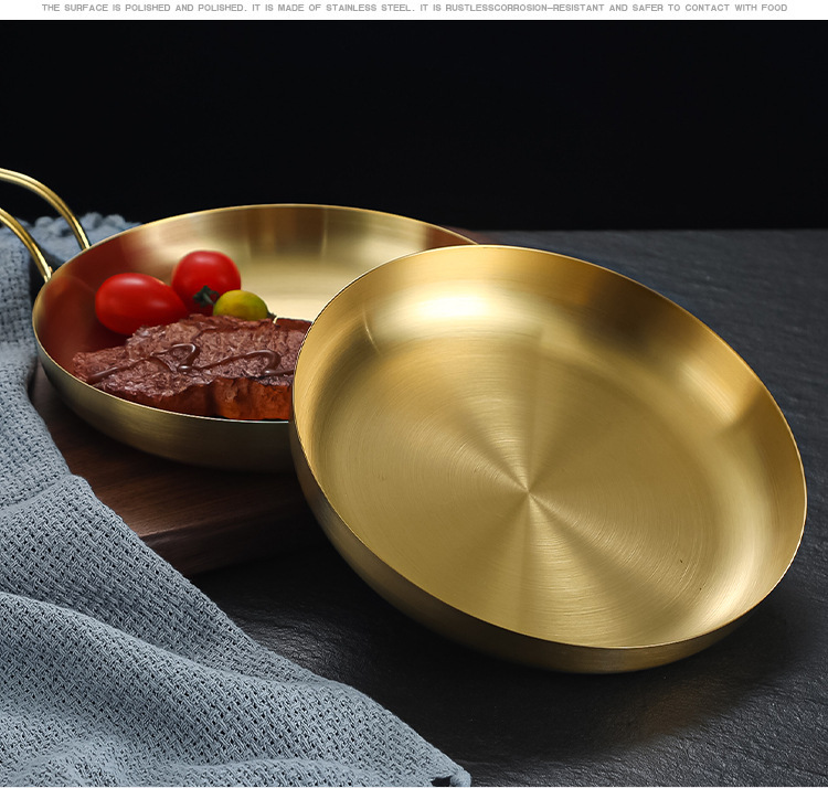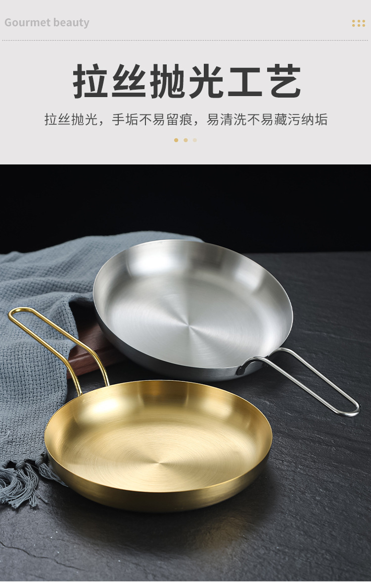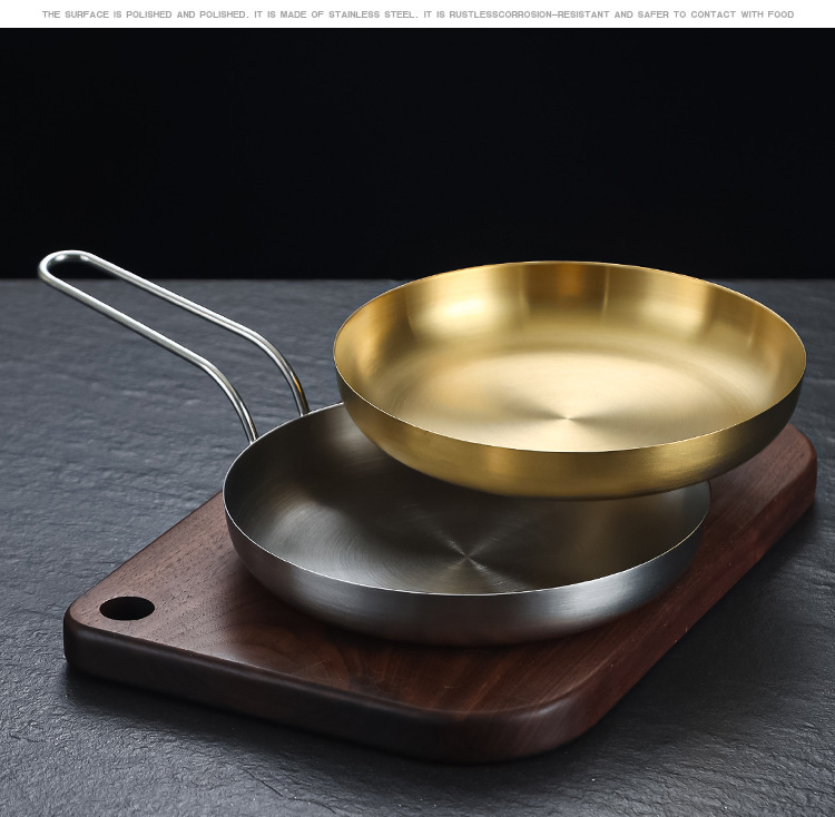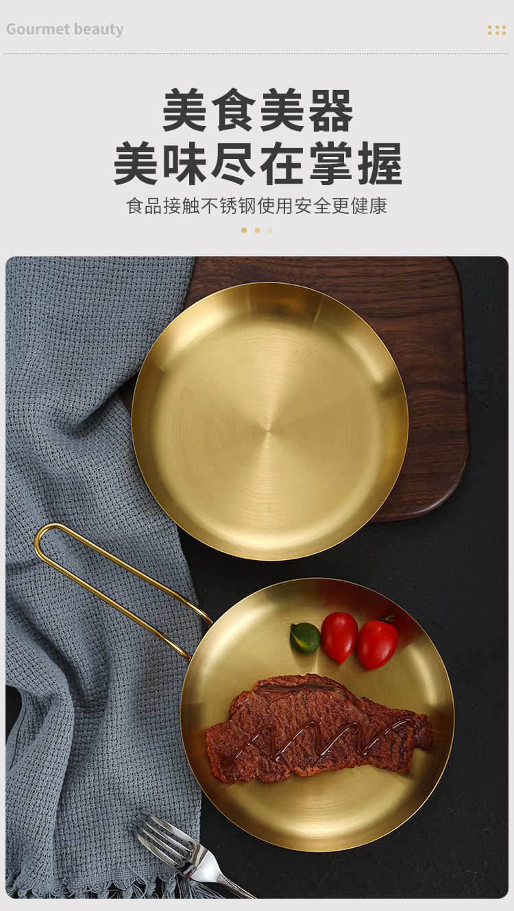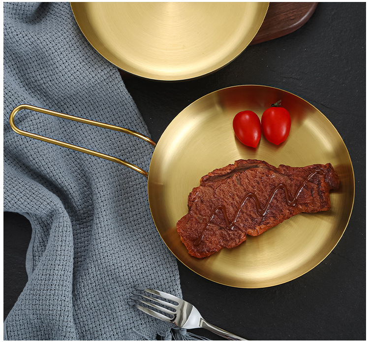 304 한국식 스테인레스 스틸 스낵 플레이트 크리 에이 티브 골든 스테이크 핸들 프라이팬 바베큐 플레이트 바베큐 접시 접시 디스크