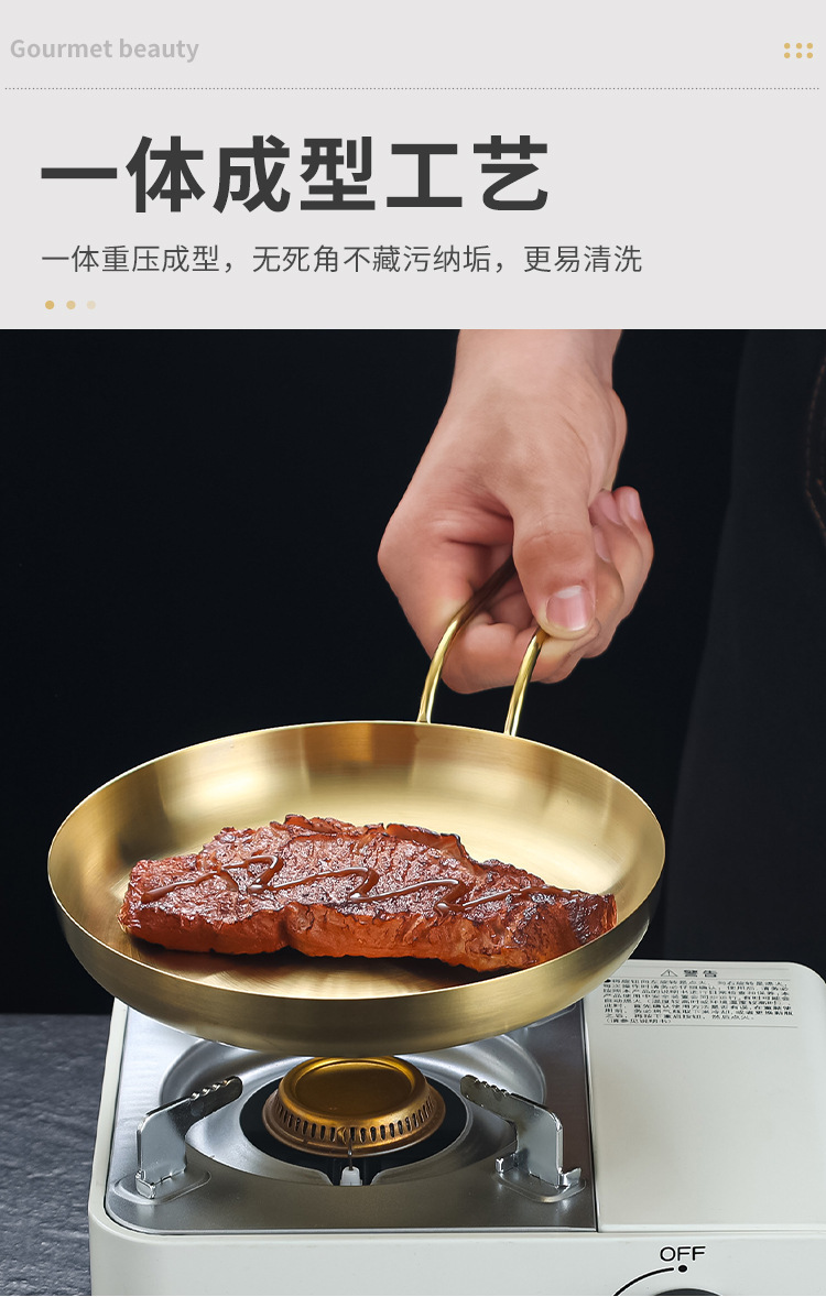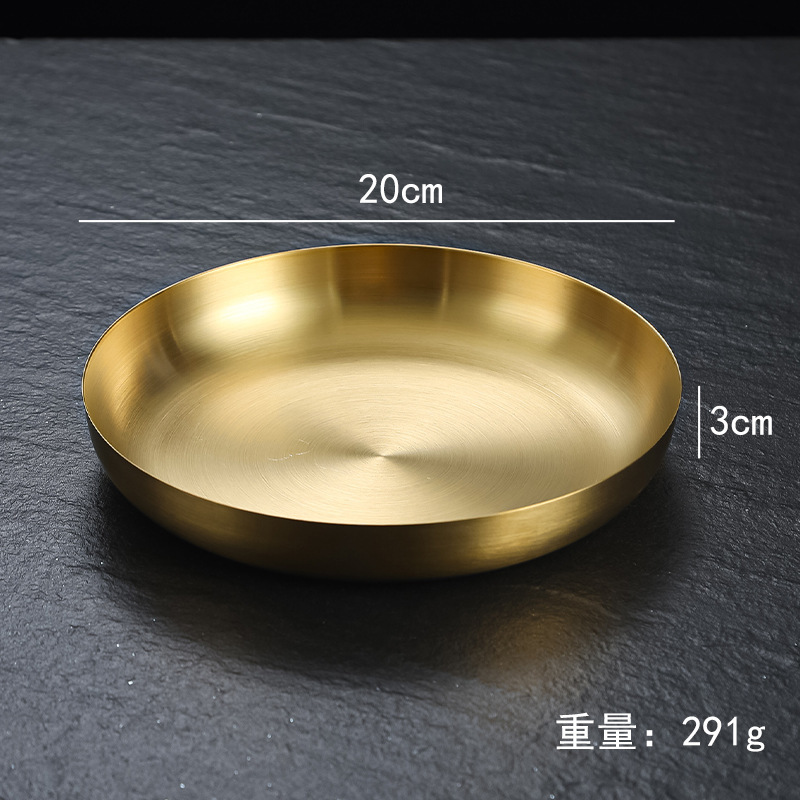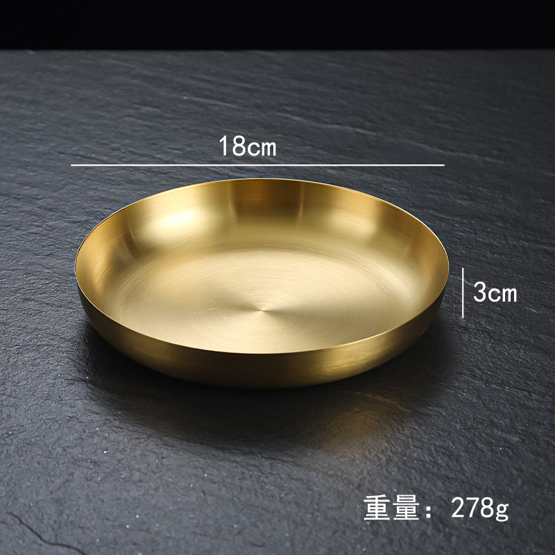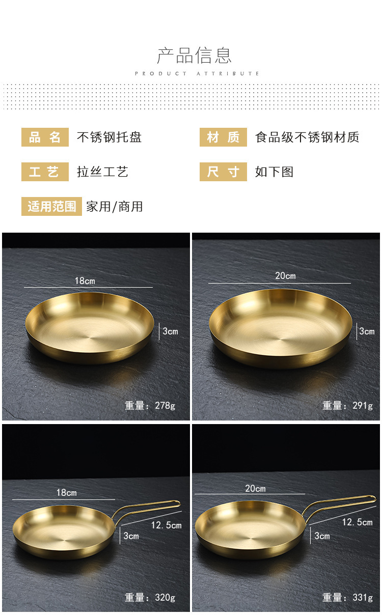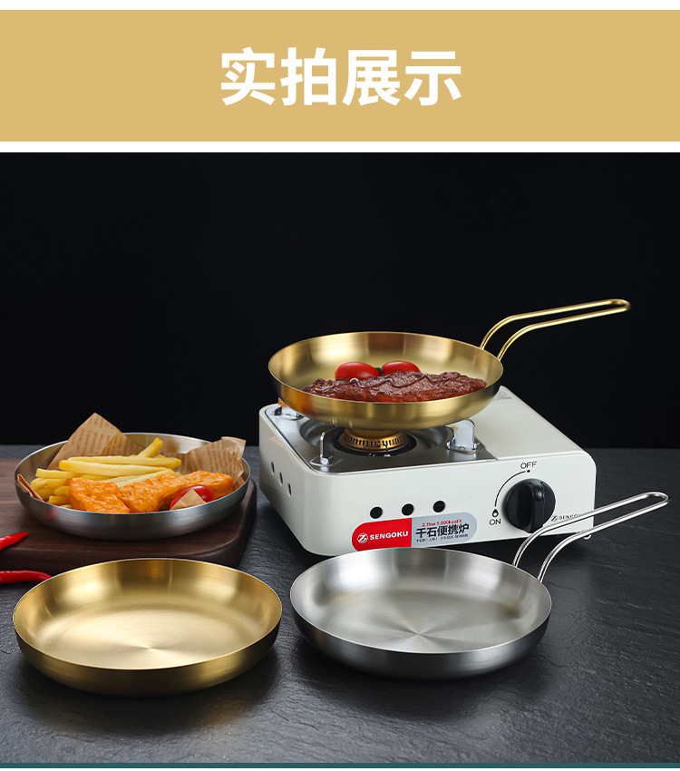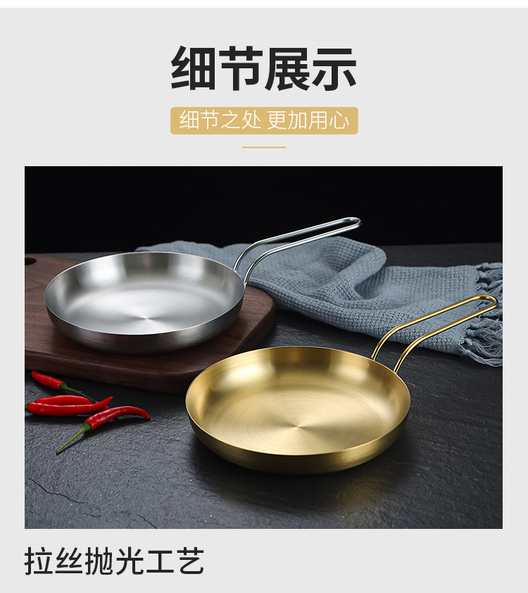 304 한국식 스테인레스 스틸 스낵 플레이트 크리 에이 티브 골든 스테이크 핸들 프라이팬 바베큐 플레이트 바베큐 접시 접시 디스크