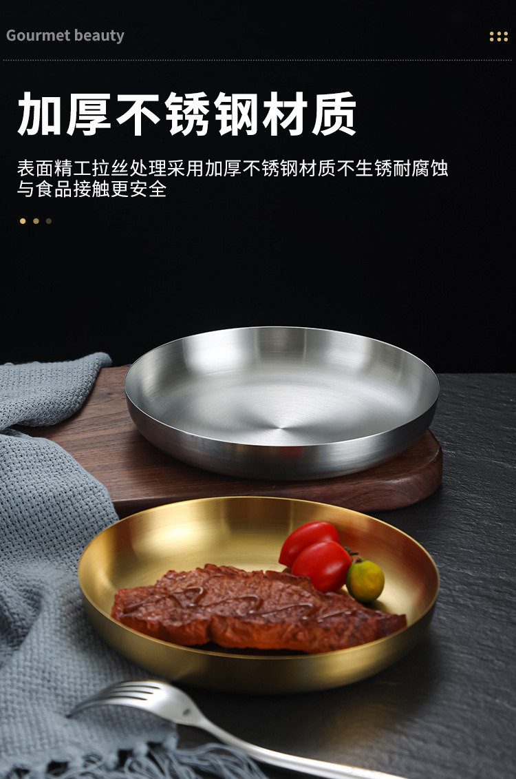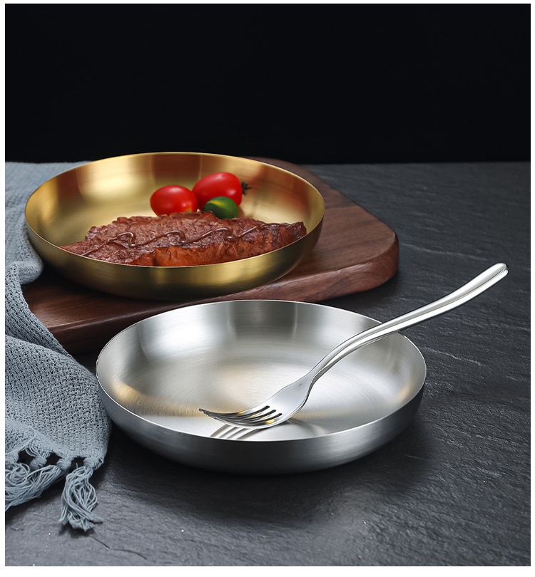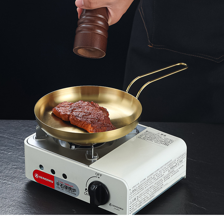 304 한국식 스테인레스 스틸 스낵 플레이트 크리 에이 티브 골든 스테이크 핸들 프라이팬 바베큐 플레이트 바베큐 접시 접시 디스크스토어 가기