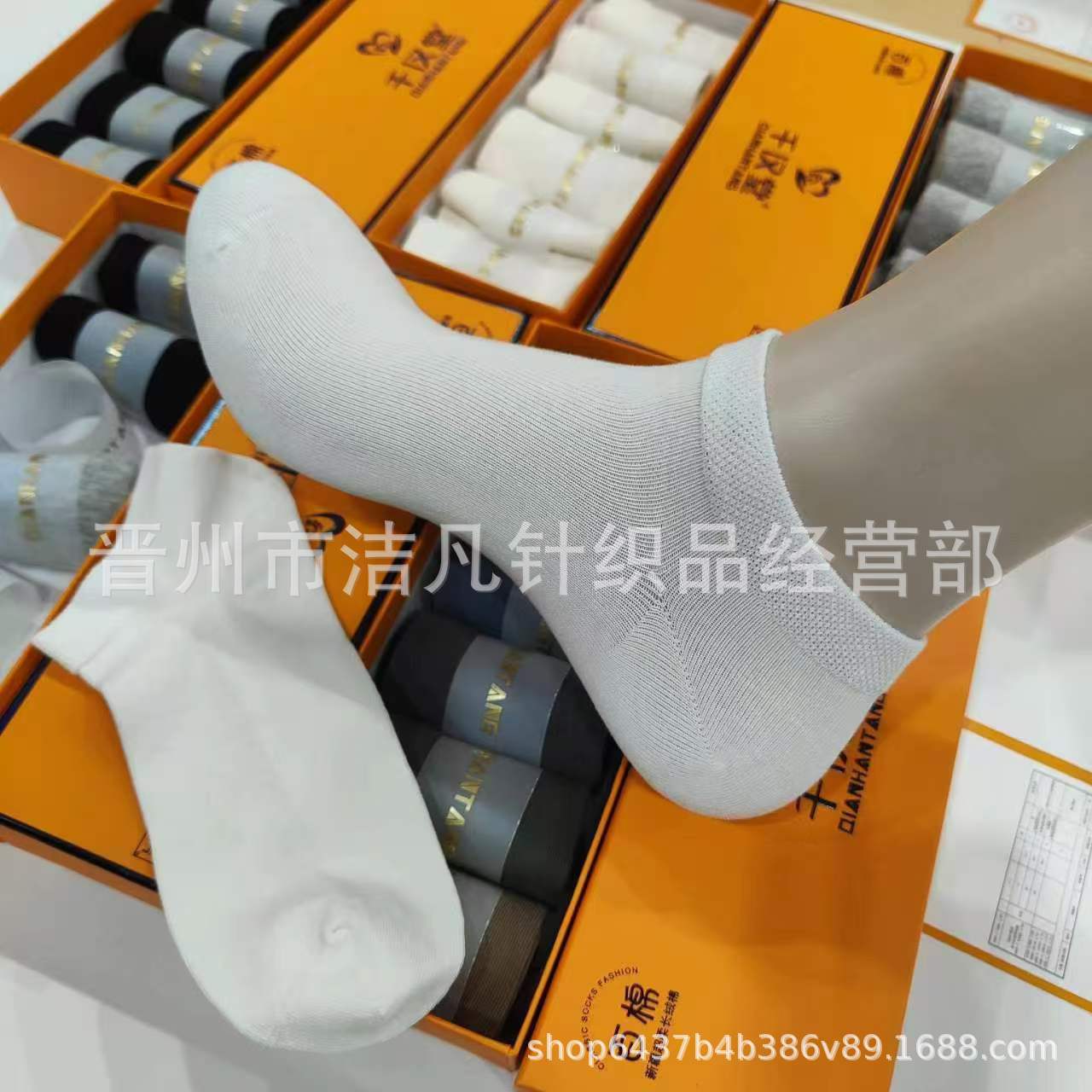 Qianhantang 여름 아로마테라피 면 남녀 공용 짧은 튜브 플랫 메쉬 캐주얼 양말, 보트 양말, 한 상자에 7켤레