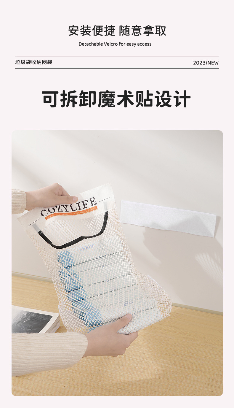 메쉬 포켓 보관 가방 쓰레기 봉투 보관 주방 비닐 봉투 벨크로 벽걸이 캐비닛 도어 메쉬 가방스토어 가기