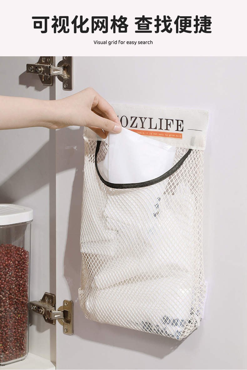 메쉬 포켓 보관 가방 쓰레기 봉투 보관 주방 비닐 봉투 벨크로 벽걸이 캐비닛 도어 메쉬 가방