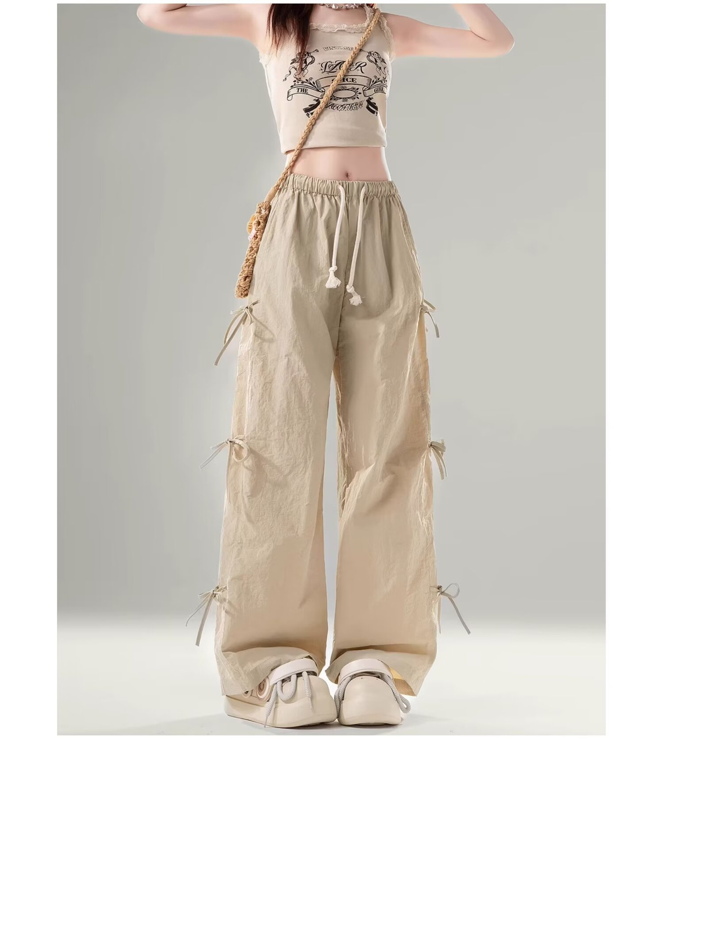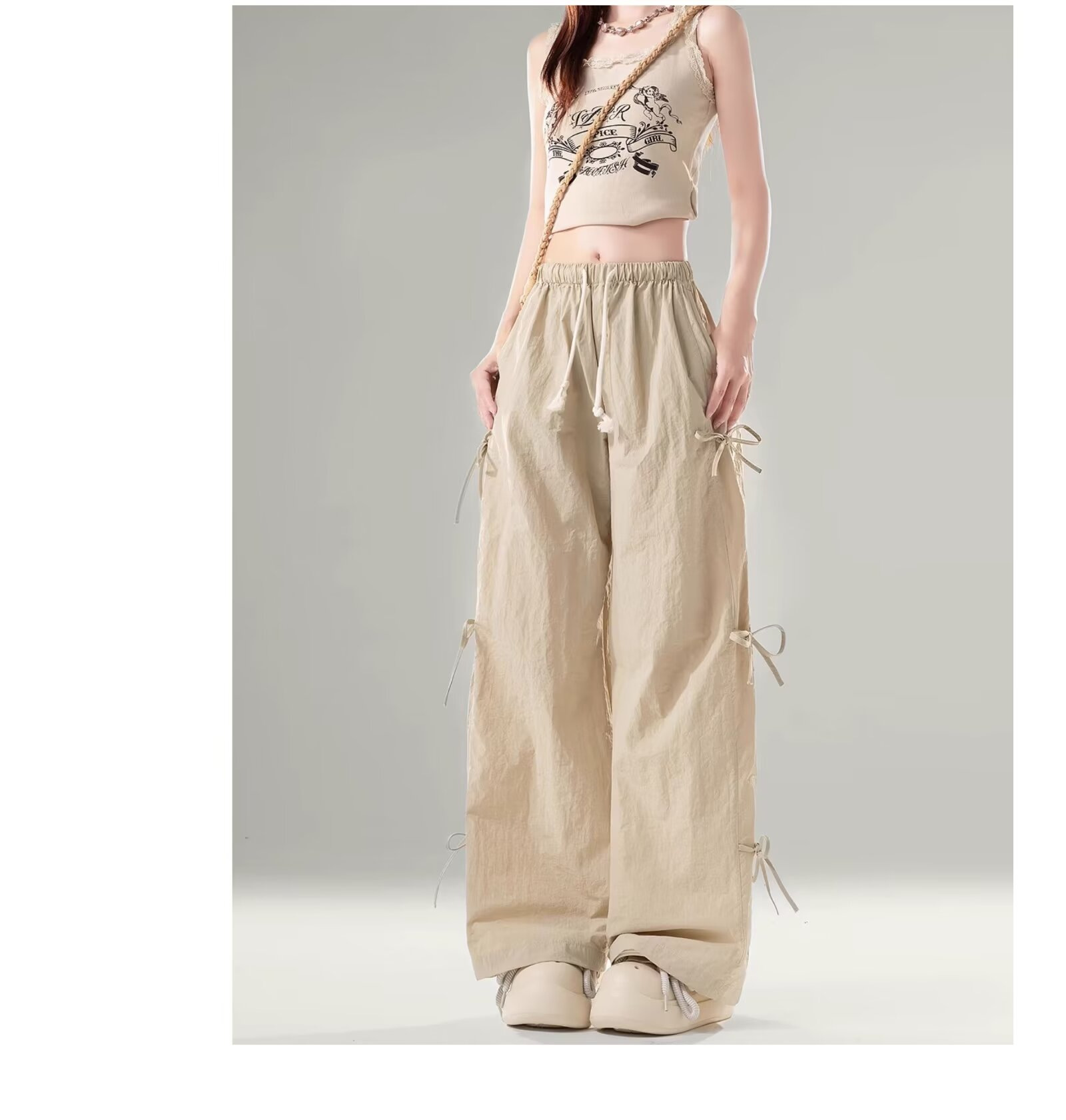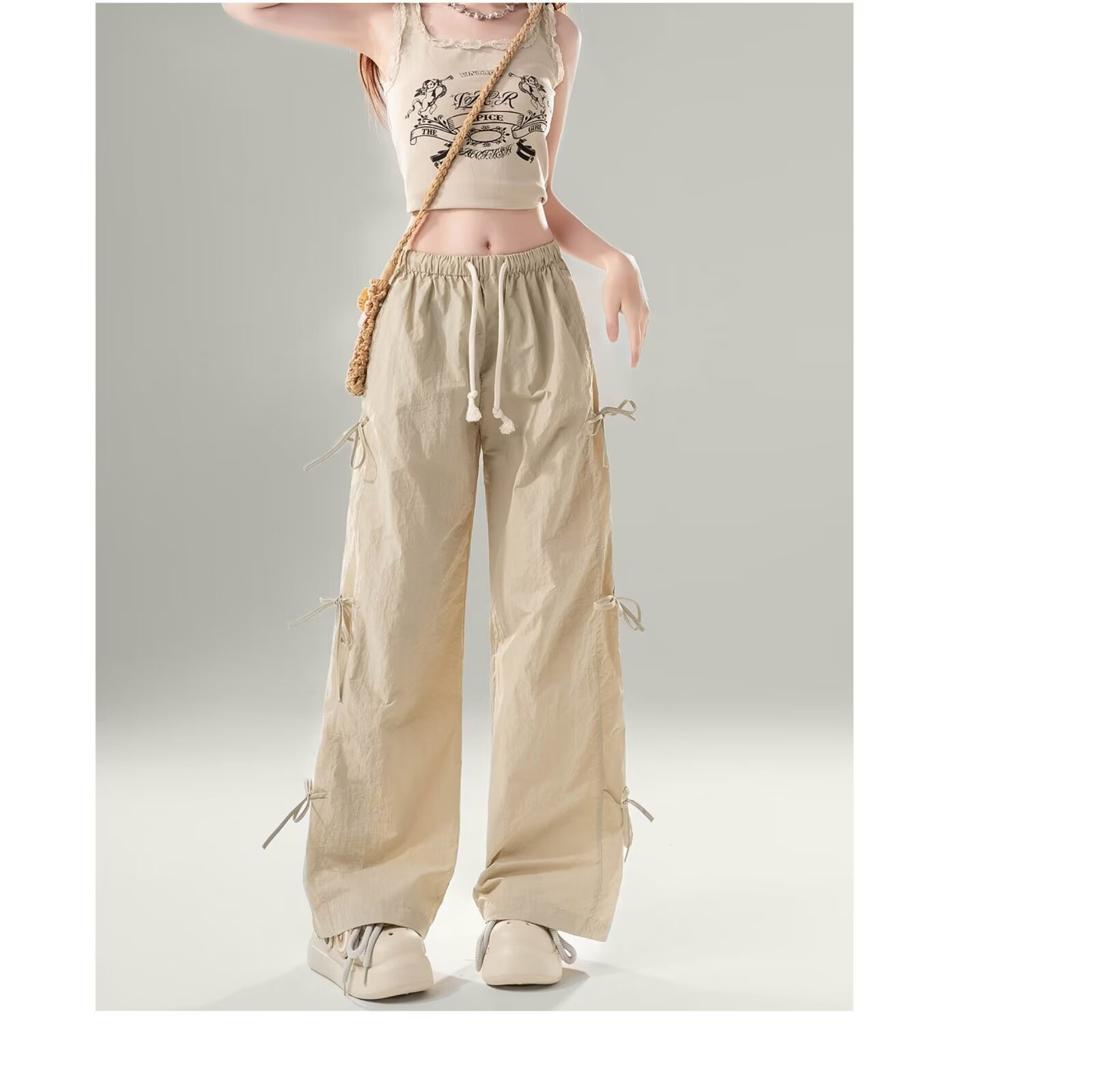 미국 낙하산 병사 툴링 바지 얇은 청소년 스포츠 러시 바지 여성 스트레이트 다리 봄과 여름 캐주얼 와이드 레그 바지스토어 가기