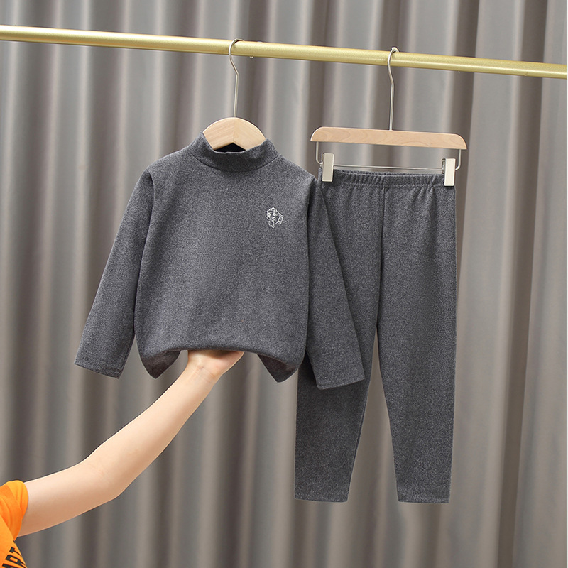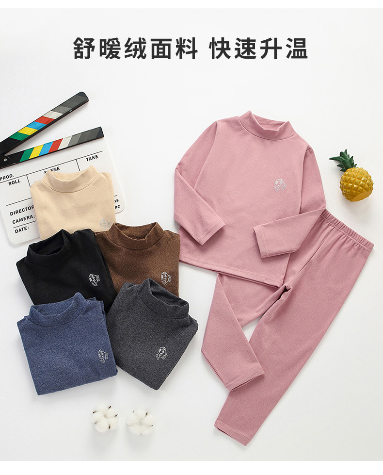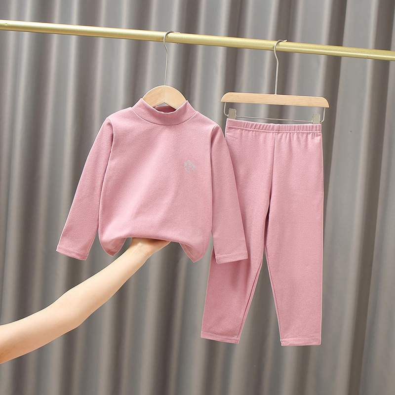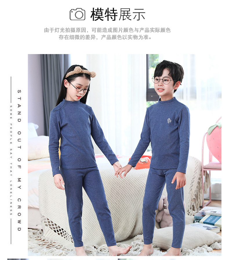 어린이 열 속옷 세트 소년 소녀 샌딩 미드 칼라 단색 따뜻한 가을 옷 가을 바지 십대 잠옷