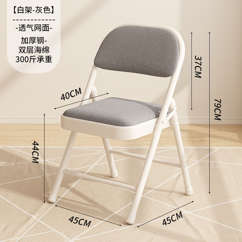 • 회색 메쉬, 이중 레이어 면 내장, 흰색 다리 접이식 의자