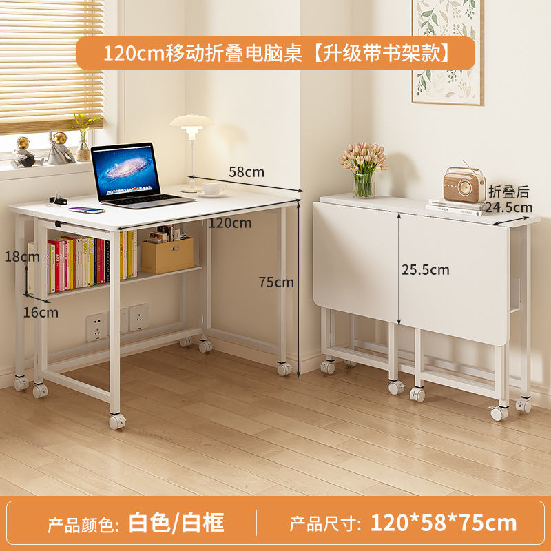• [책장부착 풀리 접이식 모델] 밀크화이트 테이블 120x58