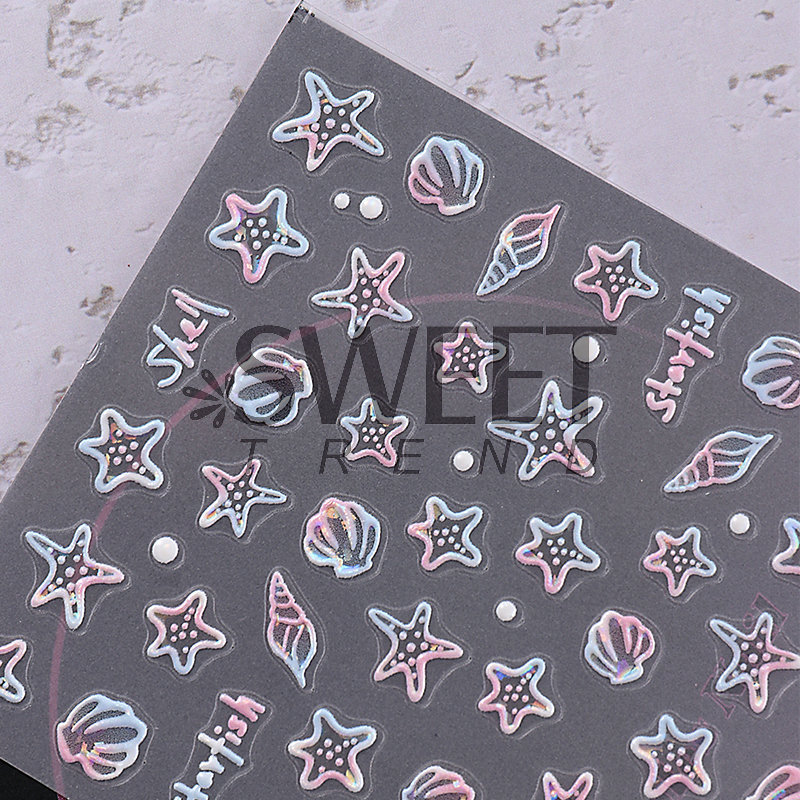 국경 간 뉴 네일 아트 스티커, 오션 스타일 시리즈 해파리 불가사리 쉘 마이크로 릴리프 네일 접착 스티커스토어 가기