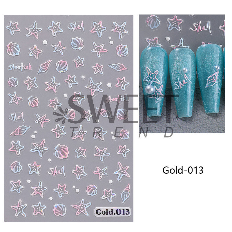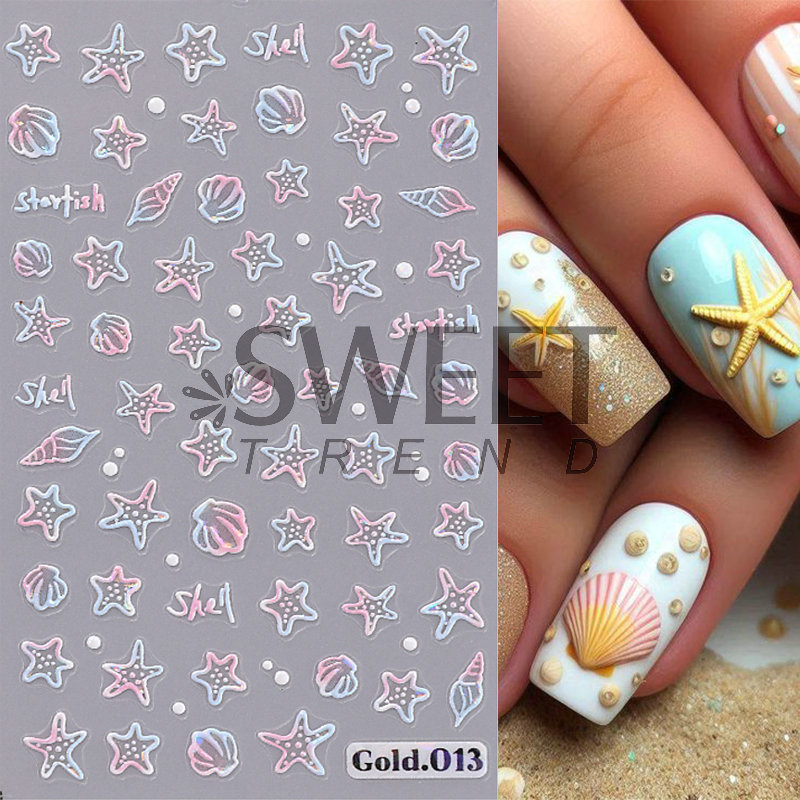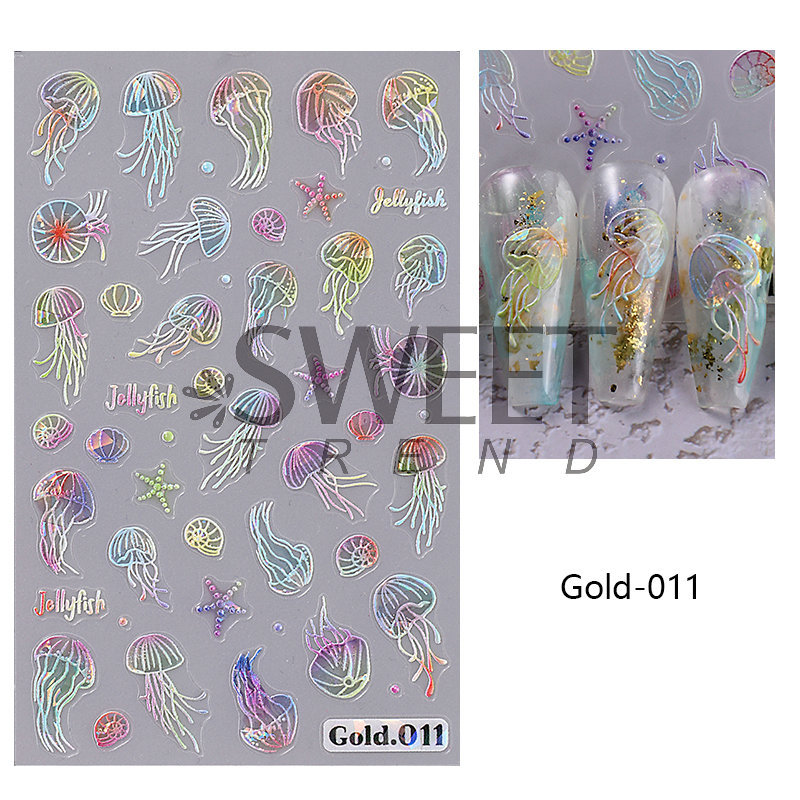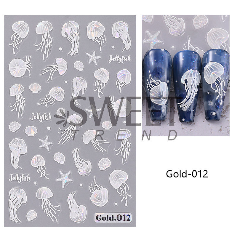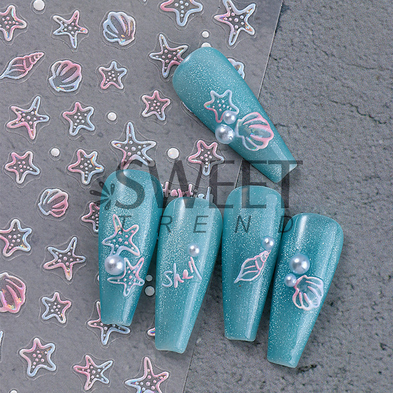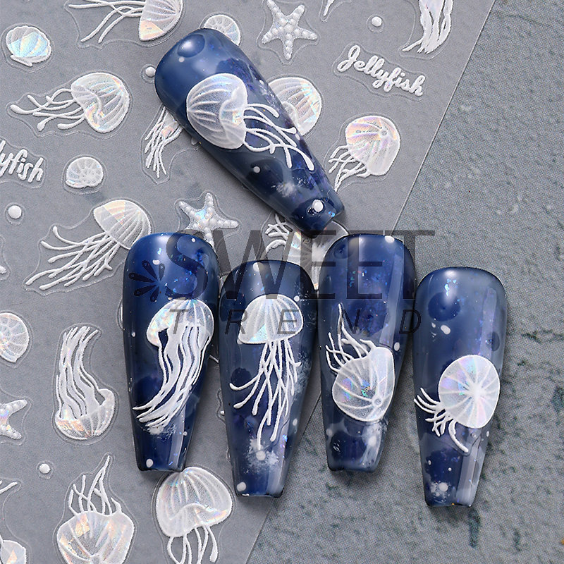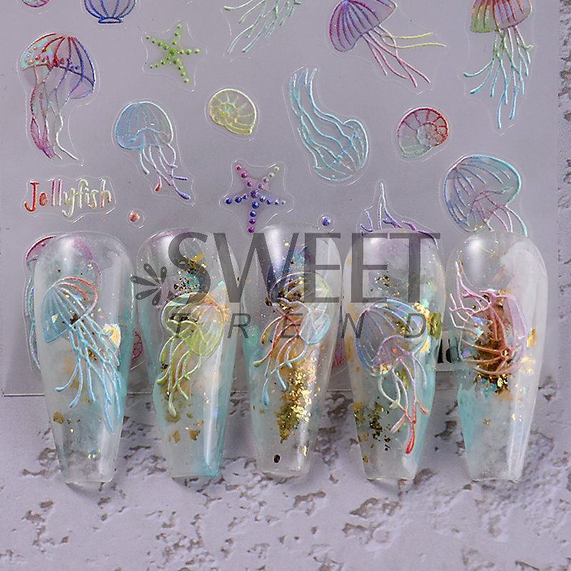 국경 간 뉴 네일 아트 스티커, 오션 스타일 시리즈 해파리 불가사리 쉘 마이크로 릴리프 네일 접착 스티커
