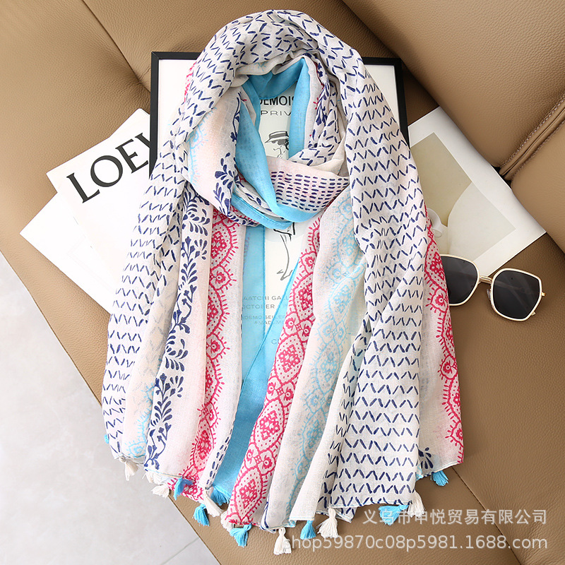 국경 간 뜨거운 판매 얇은 민족 스타일 인쇄 스카프 발리 원사 면 리넨 손 느낌 여행 태양 보호 술 목도리 여성