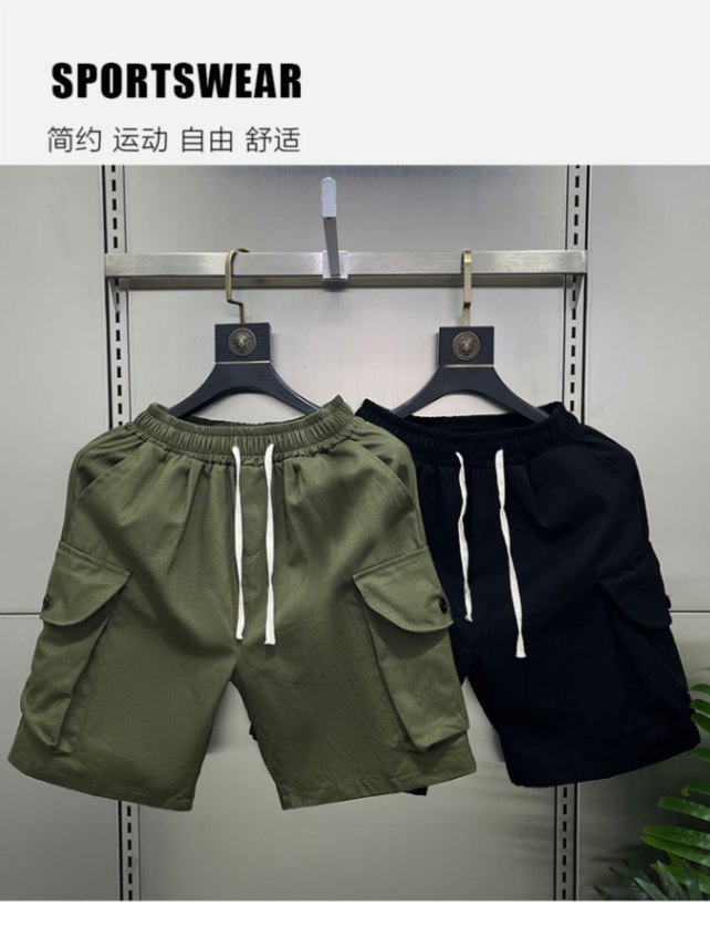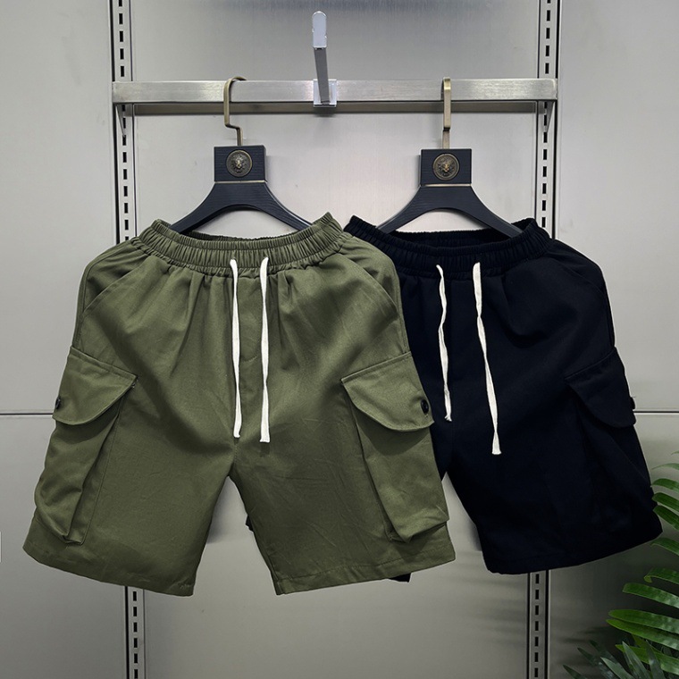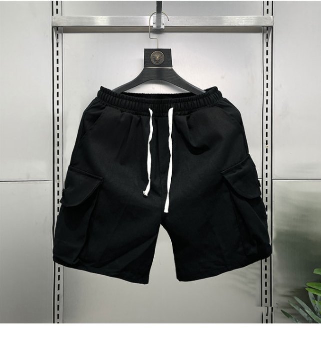 여름 느슨한 미국 스타일 순수한 검은 반바지 남자 바이브 하이 스트리트 바지스토어 가기