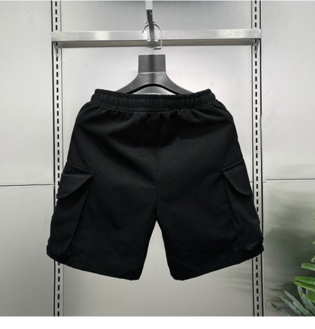 여름 느슨한 미국 스타일 순수한 검은 반바지 남자 바이브 하이 스트리트 바지