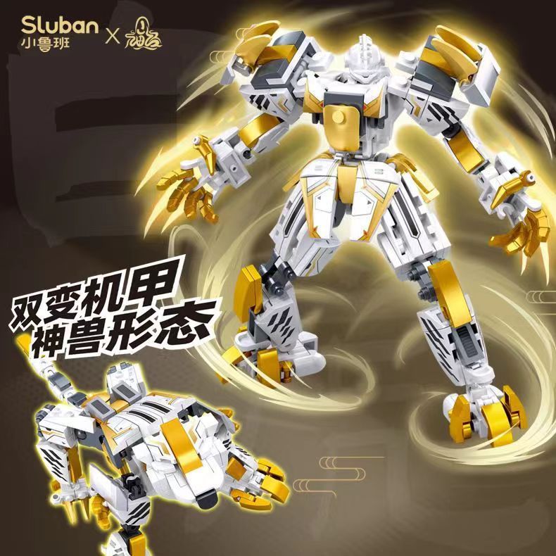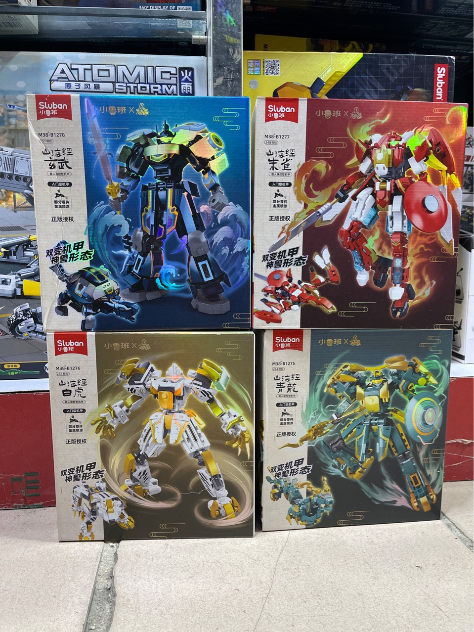 Little Luban Qinglong White Tiger Basaltic Vermilion Bird 더블 가변 메카 빌딩 블록 모델 어린이 작은 입자 교육 조립 장난감스토어 가기