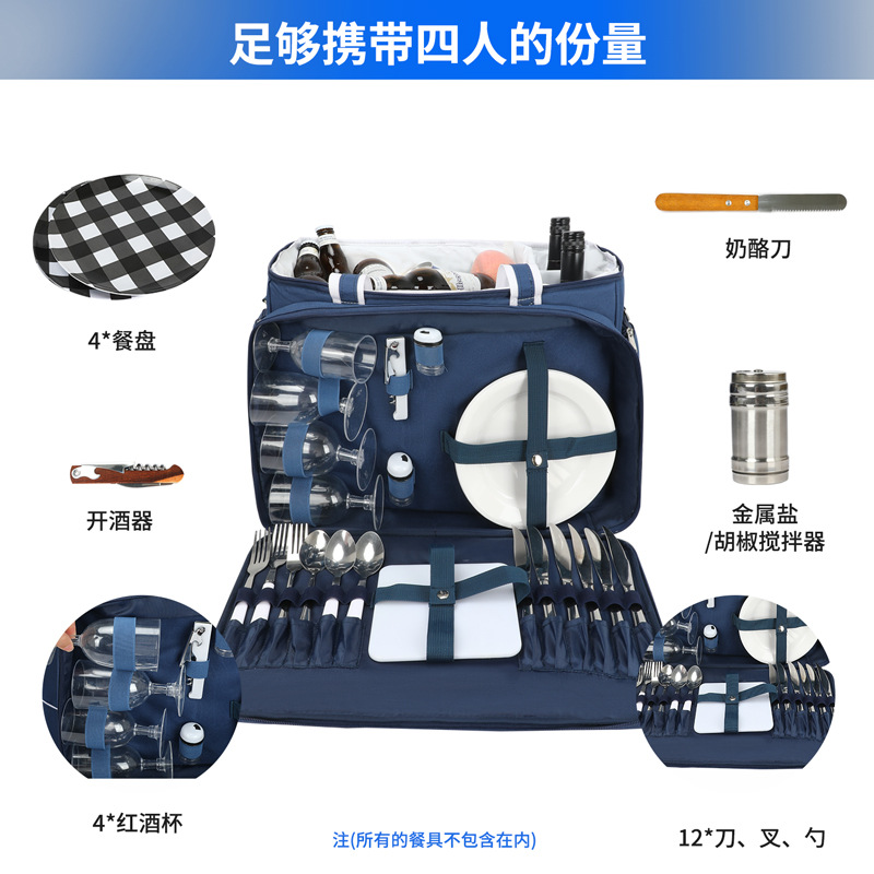 아마존 베스트셀러 휴대용 피크닉 가방 야외 식기 보관 가방 대용량 4인 피크닉 가방