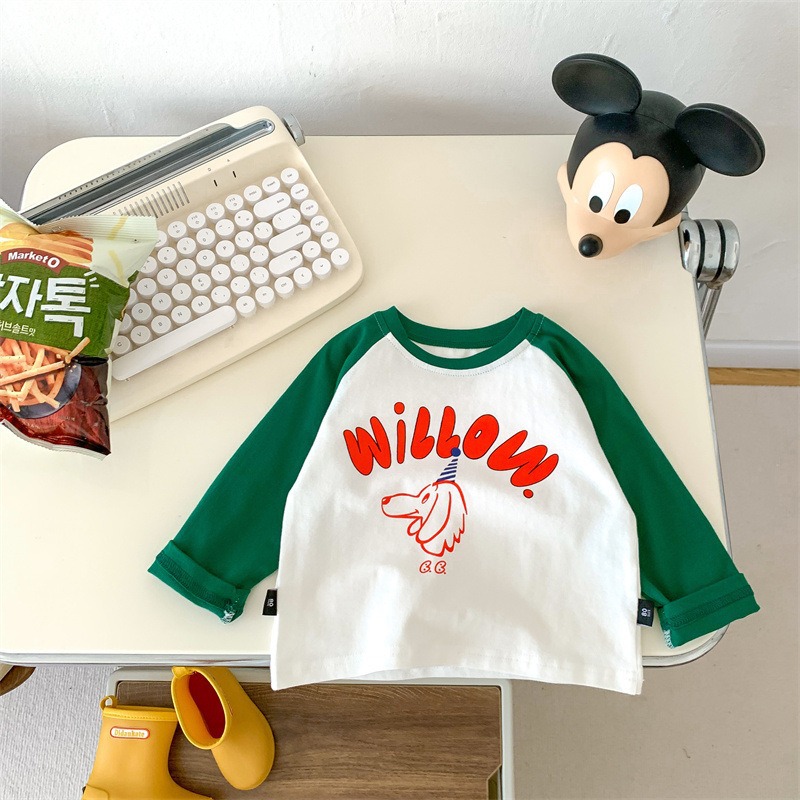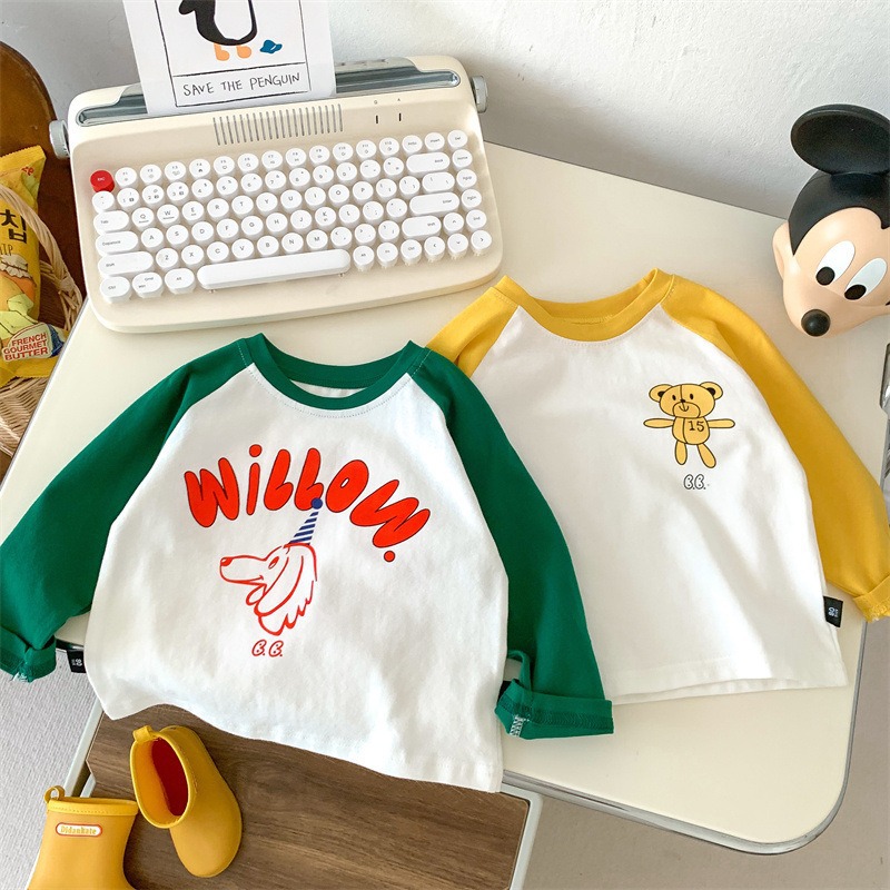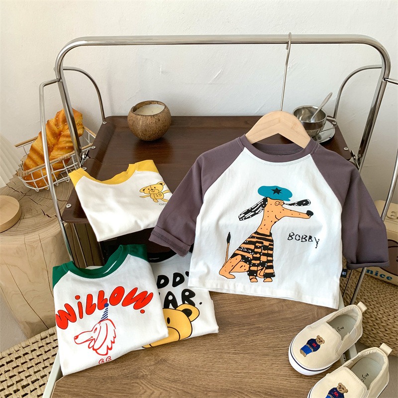아동복 한국식 긴팔 티셔츠 2024 봄과 가을 명암 라글란 소매 만화 유치원 인쇄 소년 및 어린이 탑스토어 가기
