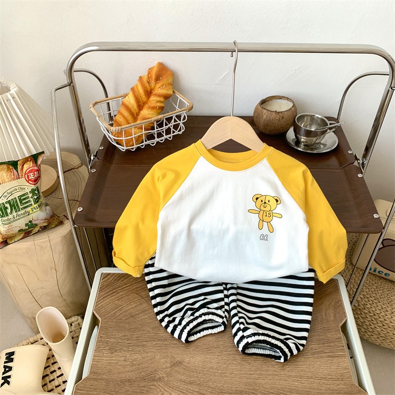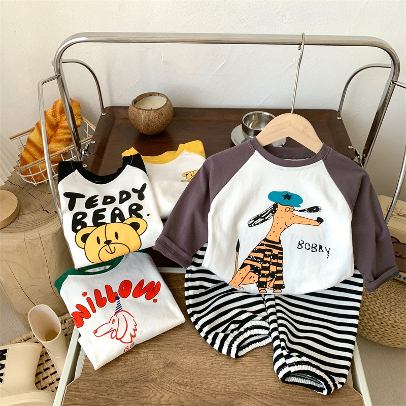 아동복 한국식 긴팔 티셔츠 2024 봄과 가을 명암 라글란 소매 만화 유치원 인쇄 소년 및 어린이 탑