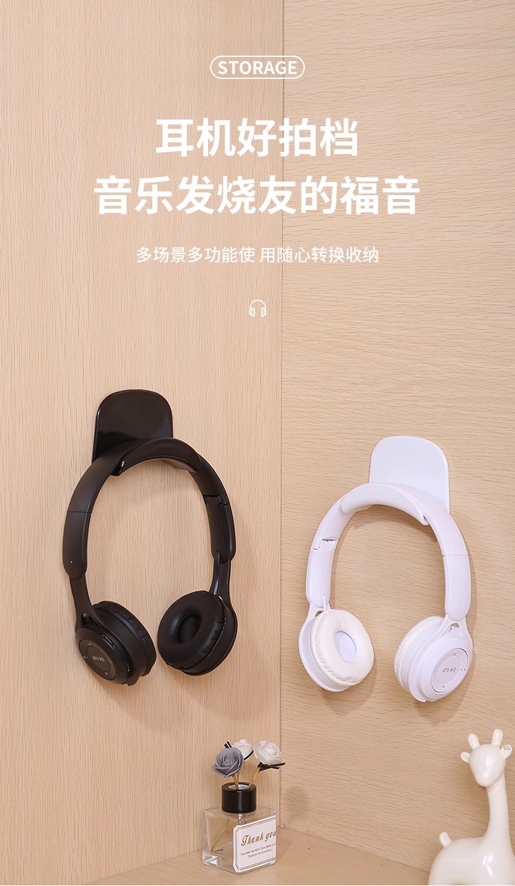 펀치없는 컴퓨터 헤드셋 브래킷 헤드셋 후크 헤드셋 보관 학생 기숙사 페이스트 벽걸이 미끄럼 방지
