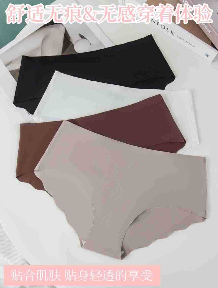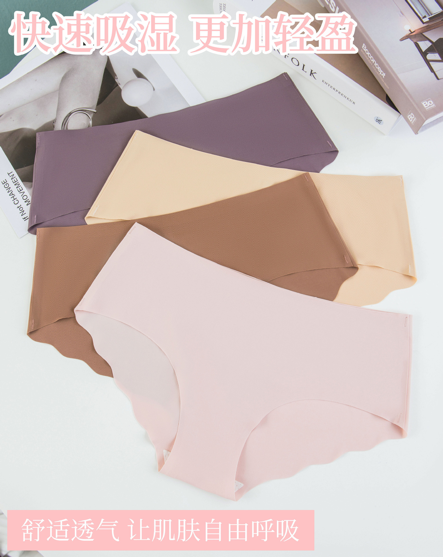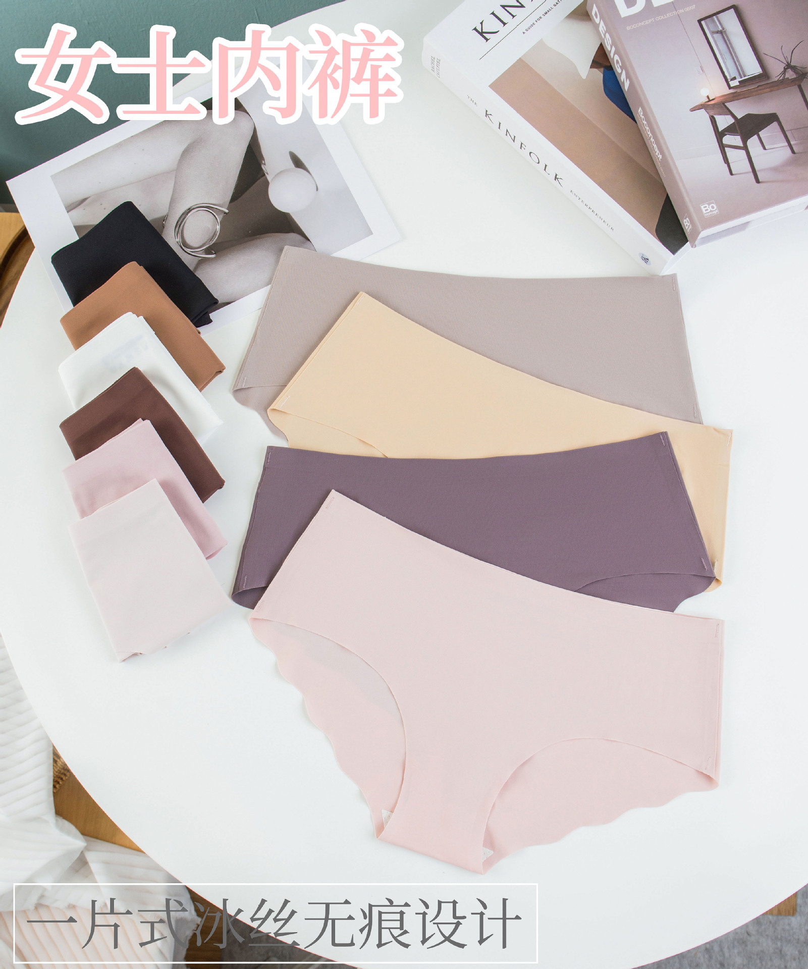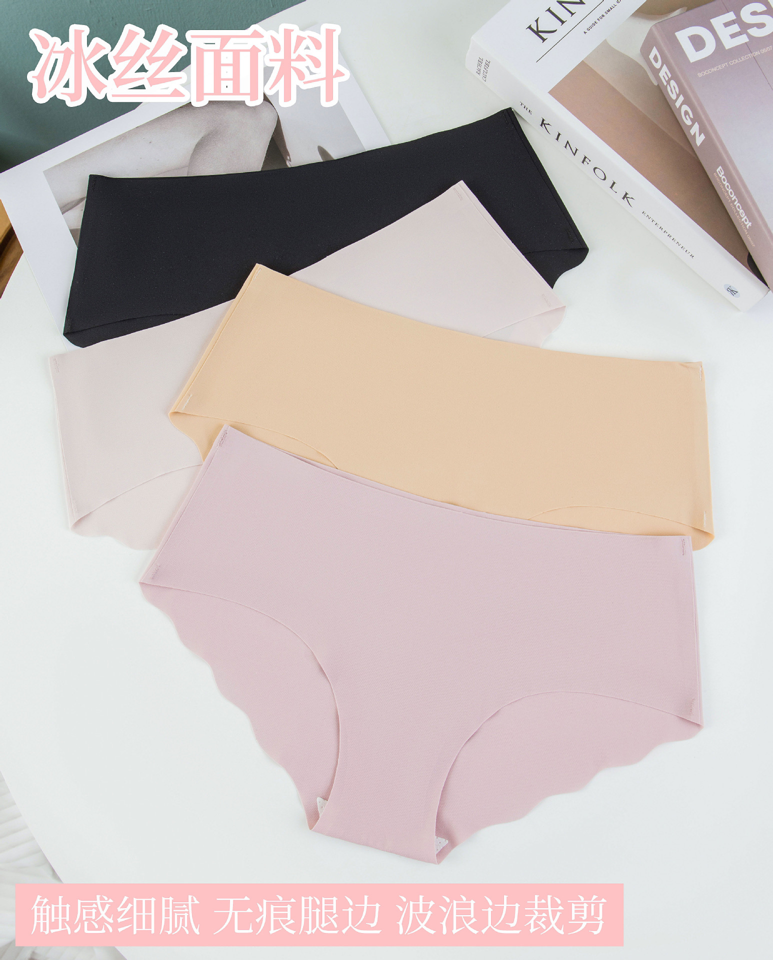 여름 여성의 아이스 실크 속옷 비 마킹 통기성 간단한 솔리드 컬러 비 클립 엉덩이 엉덩이 미드 허리 삼각형 반바지
