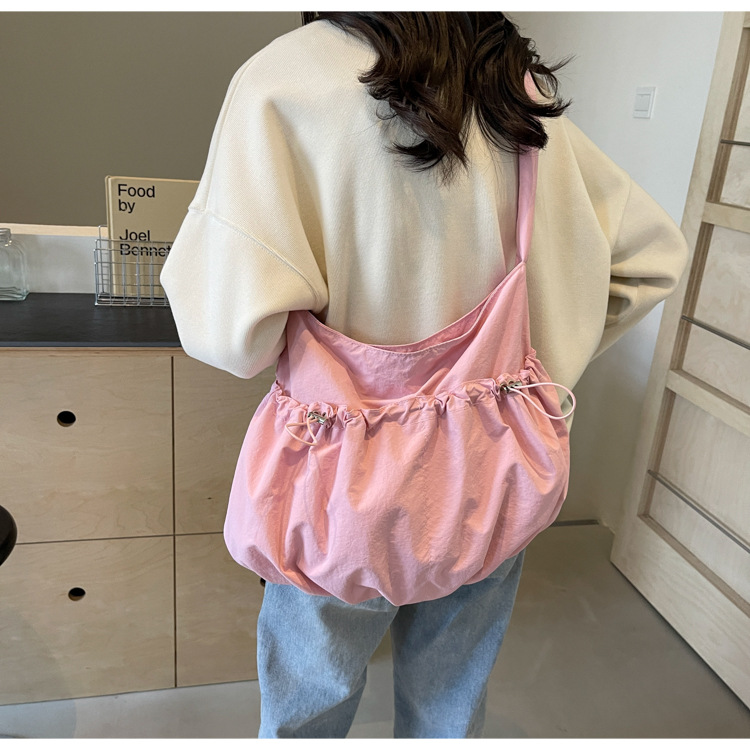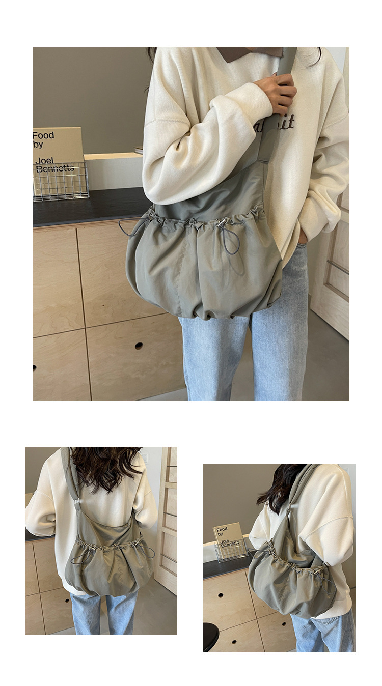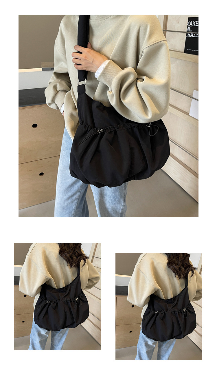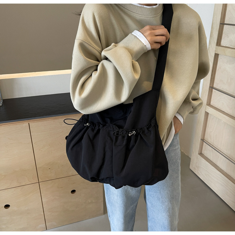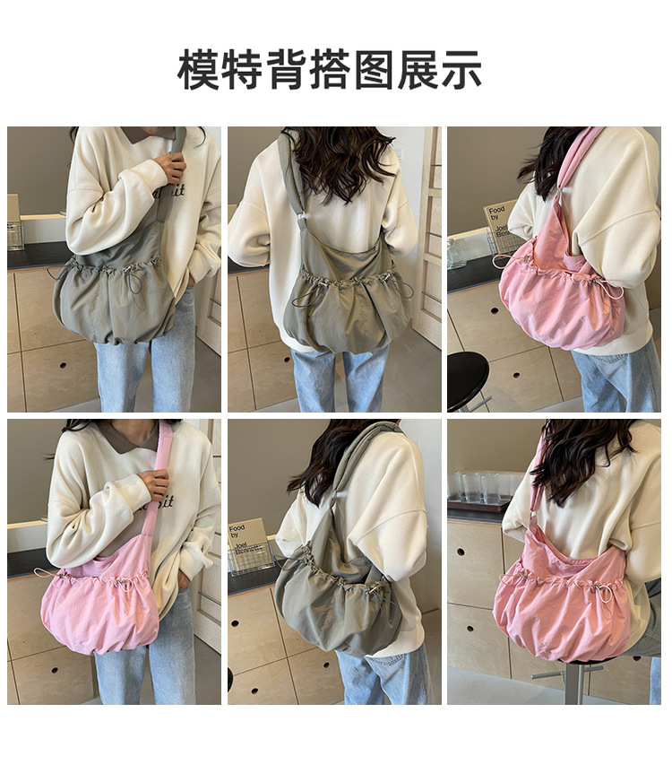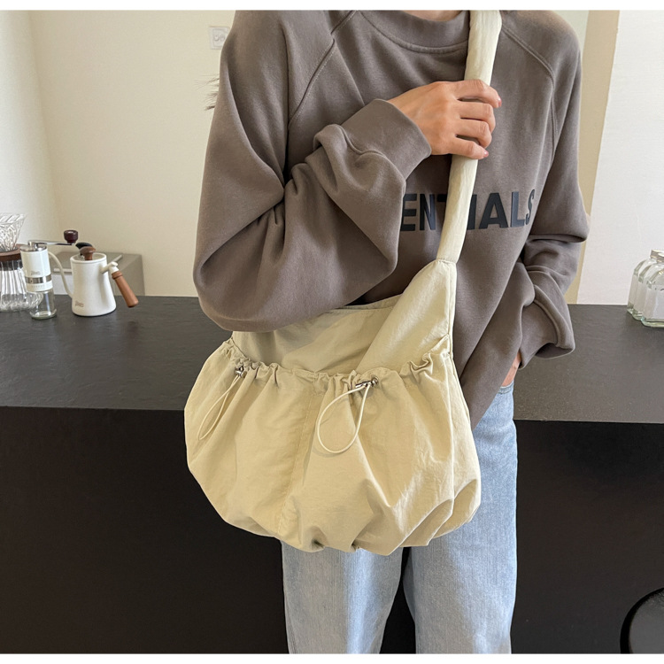주름 크로스 바디 백 학생 천 가방 여성 2024 봄과 여름 새로운 어깨 가방 솔리드 컬러 학교 가방 자동차 스티치 주름 가방스토어 가기