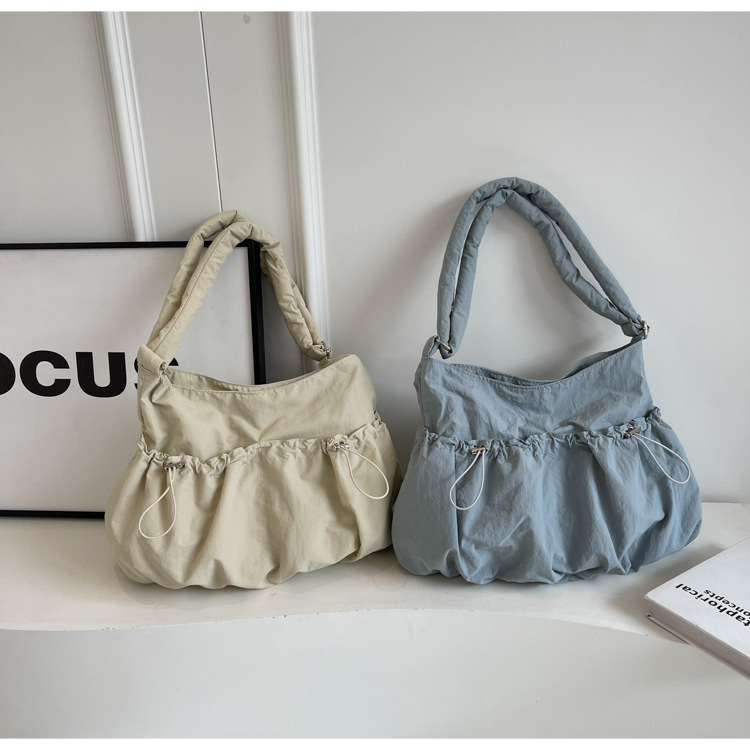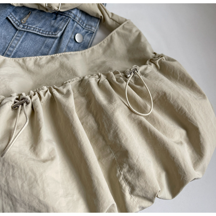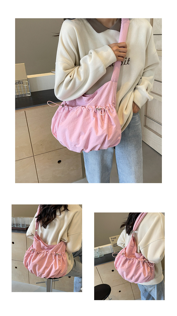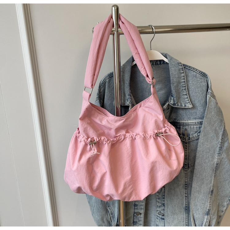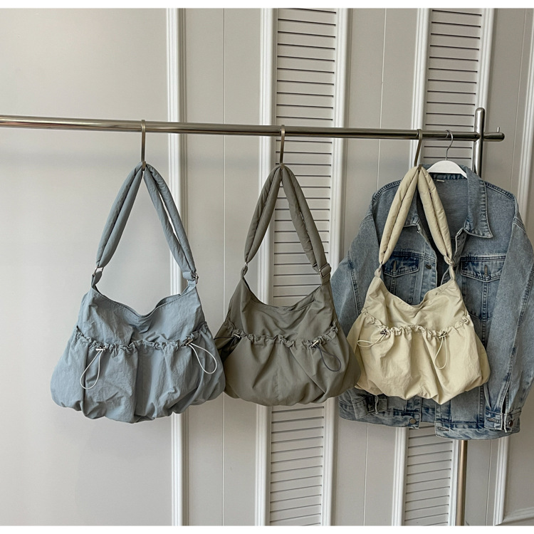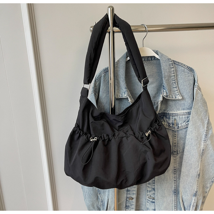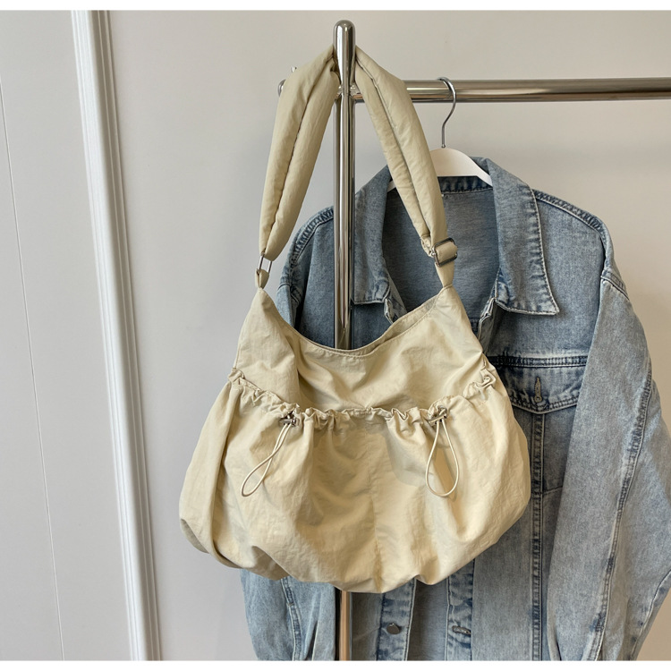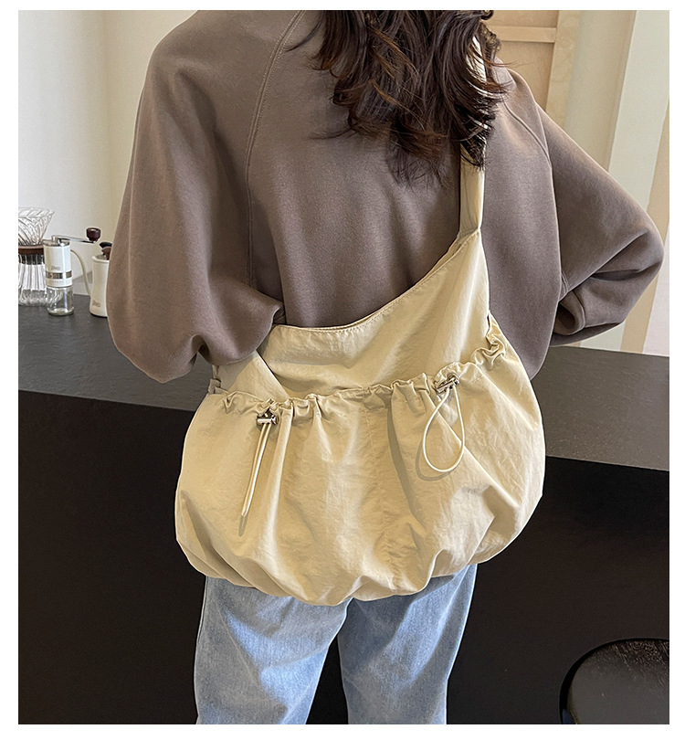 주름 크로스 바디 백 학생 천 가방 여성 2024 봄과 여름 새로운 어깨 가방 솔리드 컬러 학교 가방 자동차 스티치 주름 가방스토어 가기