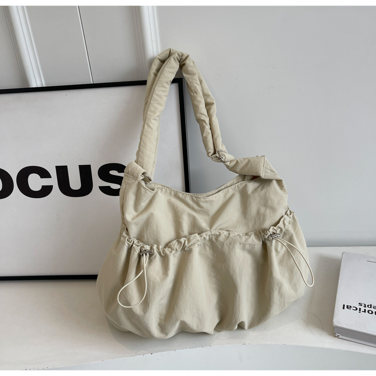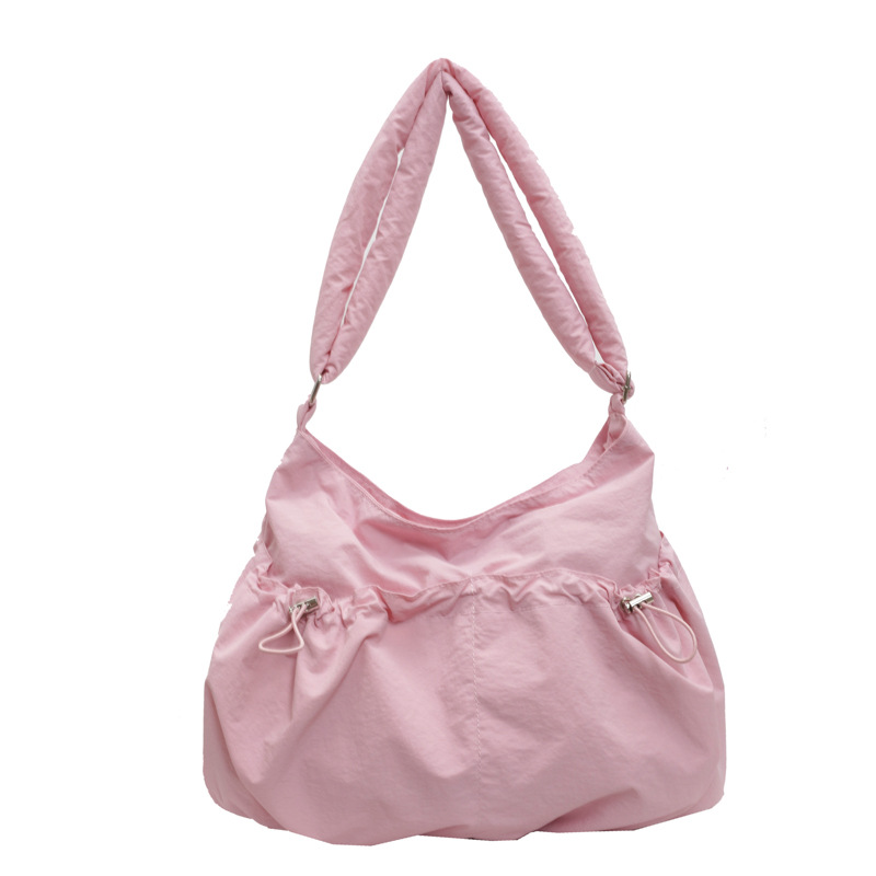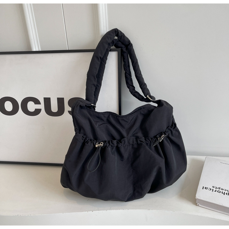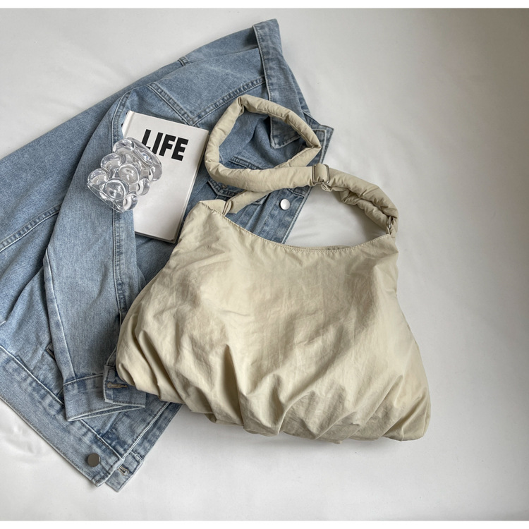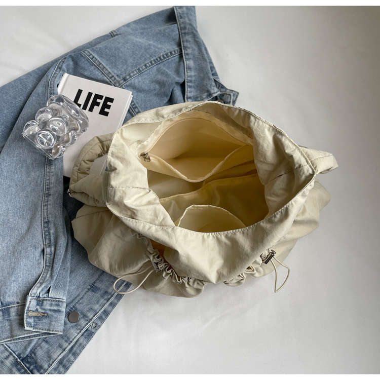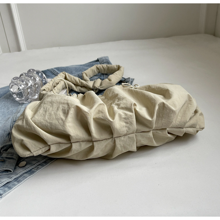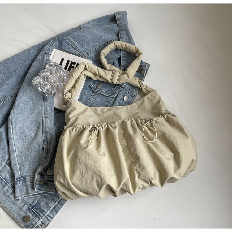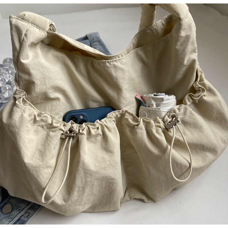 주름 크로스 바디 백 학생 천 가방 여성 2024 봄과 여름 새로운 어깨 가방 솔리드 컬러 학교 가방 자동차 스티치 주름 가방스토어 가기