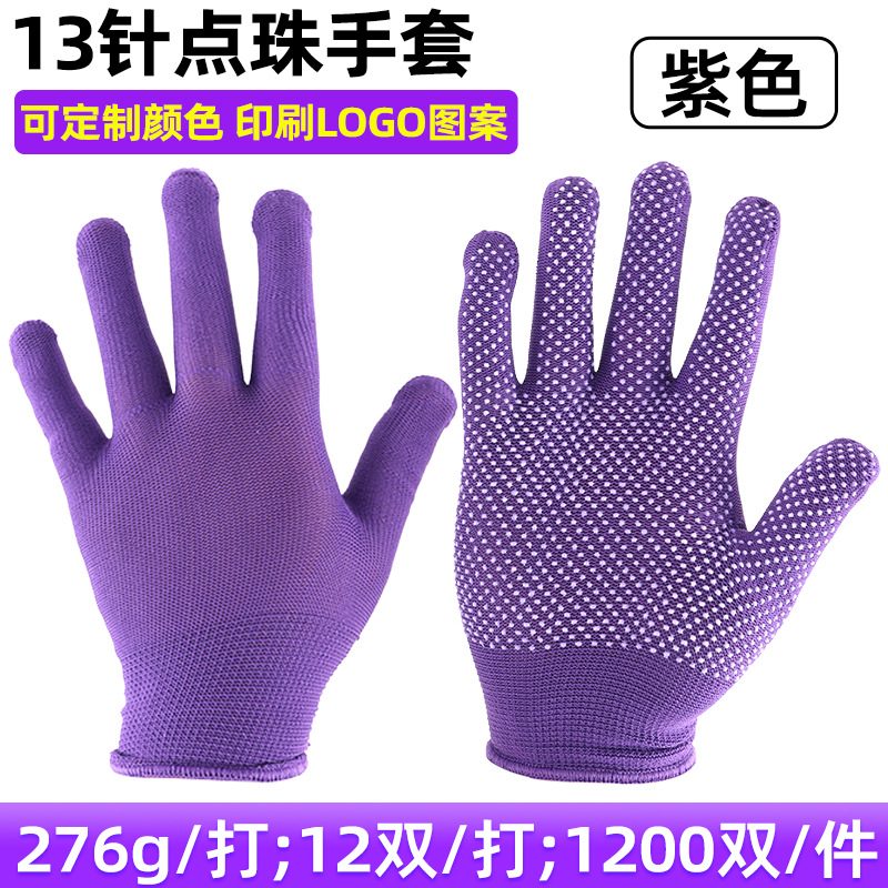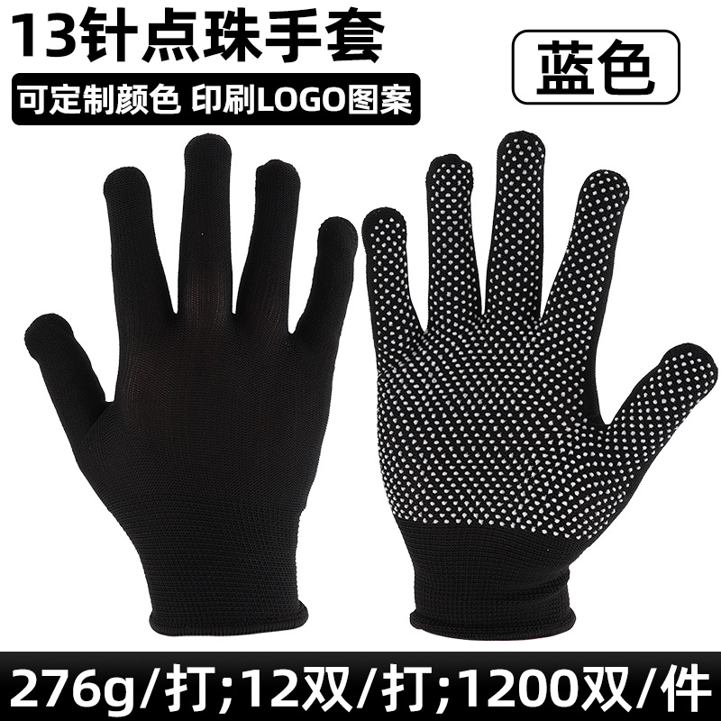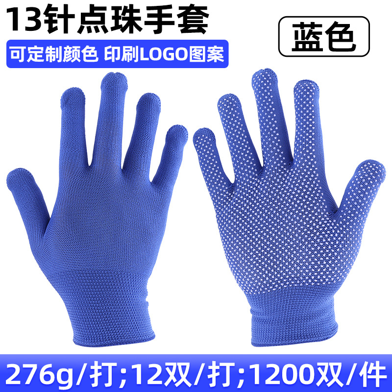 국경 간 대외 무역 13 핀 비드 노동 보호 장갑 인공 가장자리 분배 현장 취급 안티 슬립 플라스틱 장갑