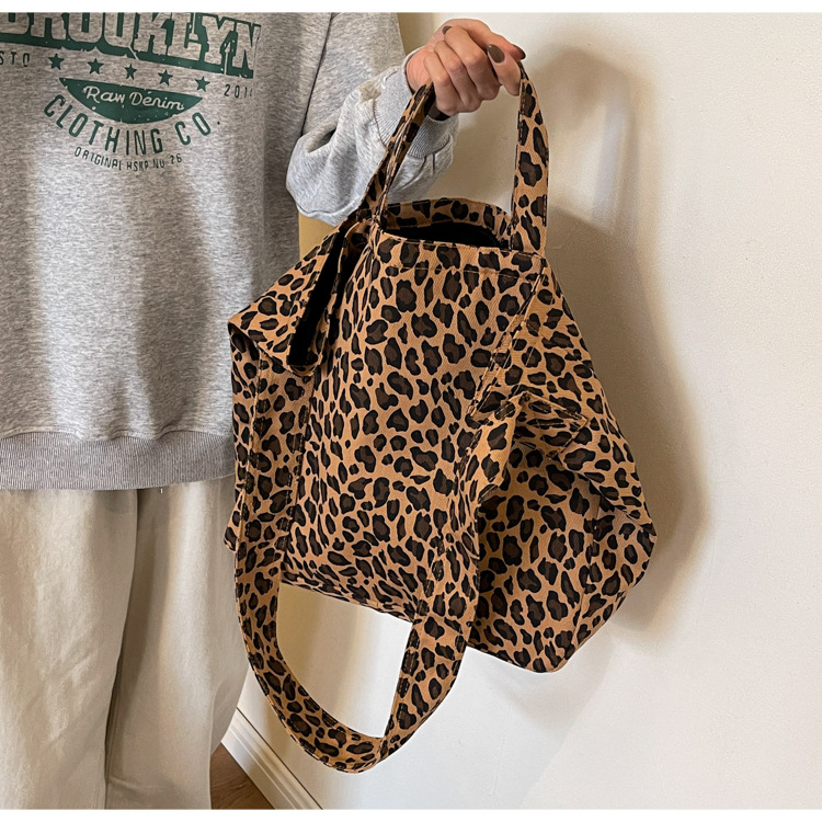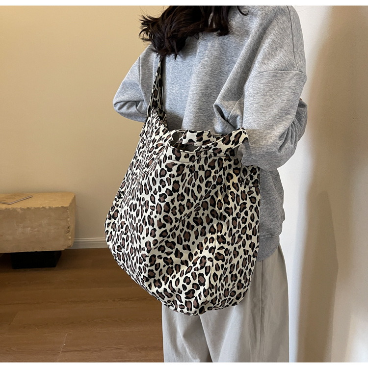 레오파드 프린트 캔버스 통근 게으른 스타일 가방 여성 2024 대외 무역 패션 휴대용 대용량 싱글 숄더 엄마 크로스 바디 백스토어 가기