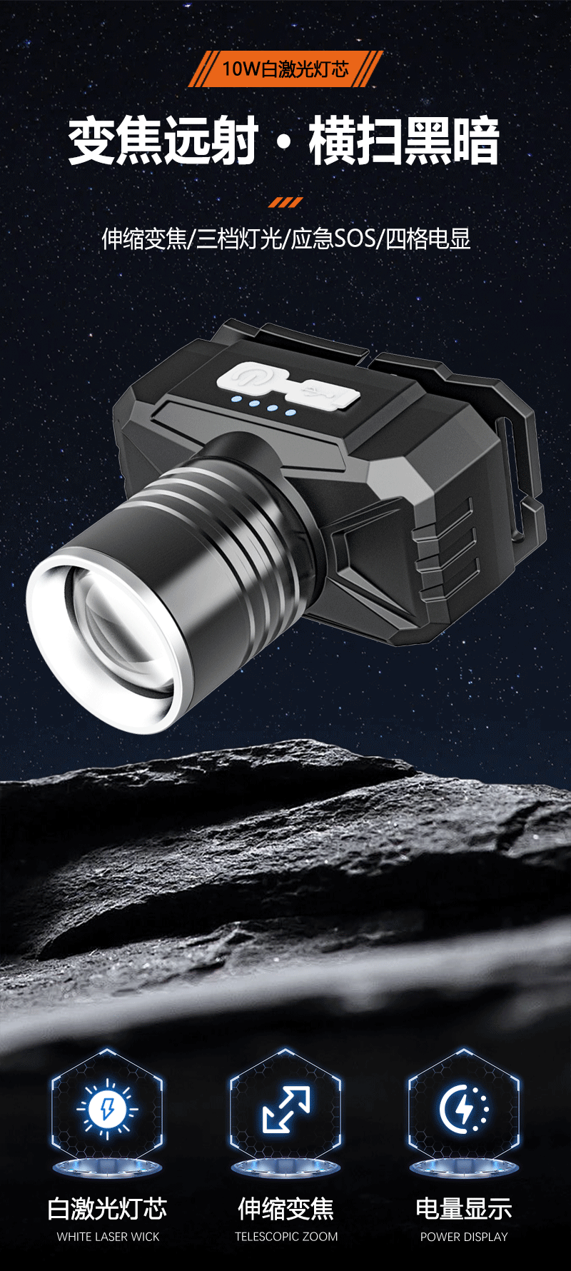 흰색 레이저 지능형 유도 헤드 램프 헤드 마운트 P50 강한 조명 헤드 램프 광부의 램프 야외 작업 조명 led 전기 디스플레이 낚시
