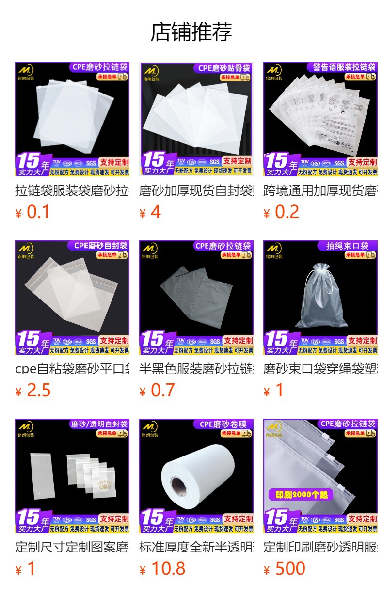 명랑 포장 반투명 PE 지퍼백 CPE 양면 7실, 8실, 10실 맞춤형 봉투, 구강용품 및 장식품 포장 백스토어 가기