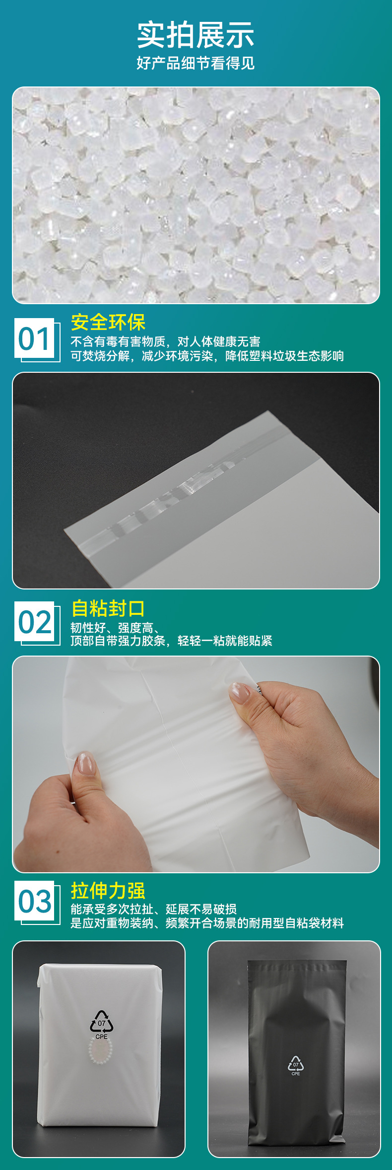 • 무광택 흰색-인쇄 없음, CPE 양면 7 실크, 9*15+3