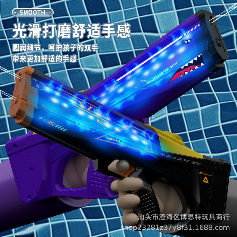 상어 전기 물 총 레이저 쿨 대용량 다채로운 빛 어린이 스프레이 물 촬영 물 놀이 장난감