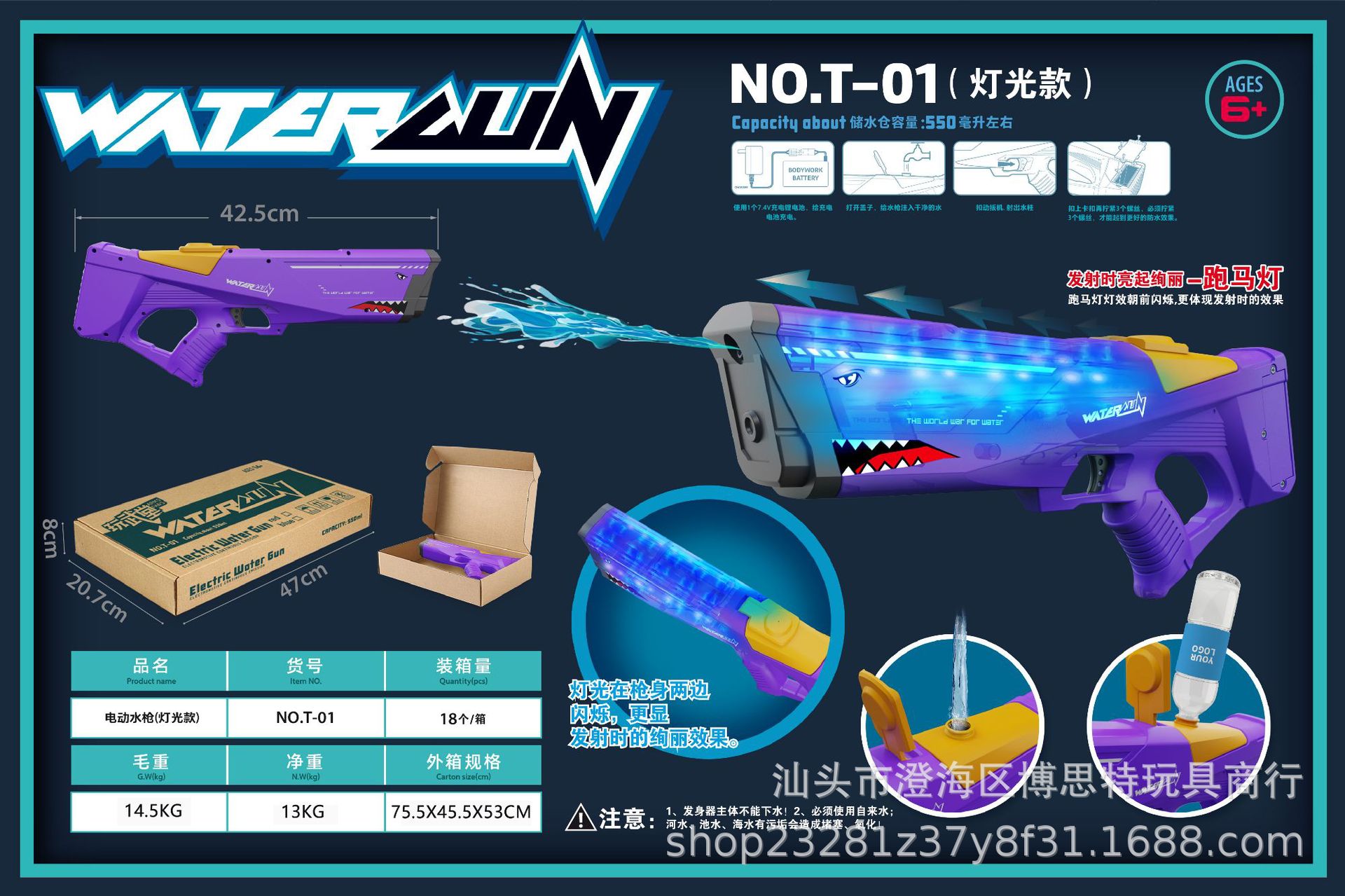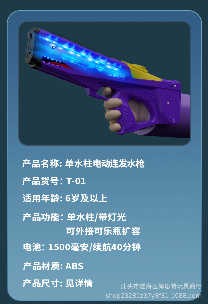 • 조명과 T-01 [보라색 확장 가능] 상어 시세 전기 물 총 전자 상거래 상자