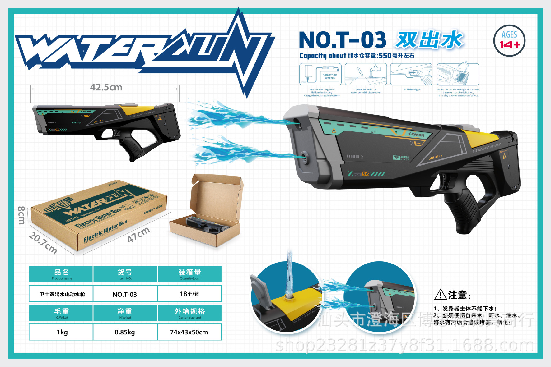 • 조명과 T-03 [블랙 확장 가능] 상어 시세 전기 물 총-이중 물 콘센트-전자 상거래 상자-블랙