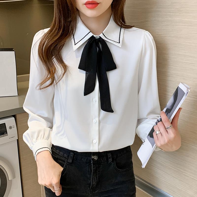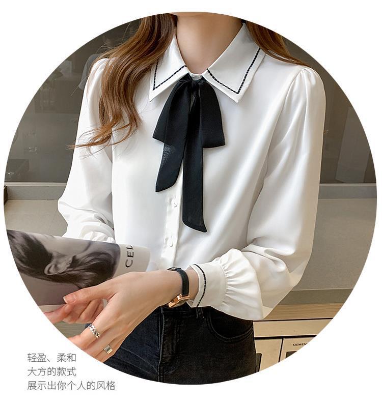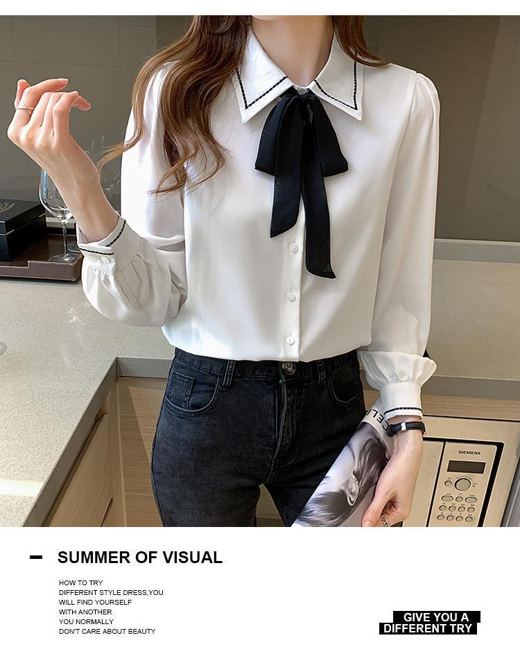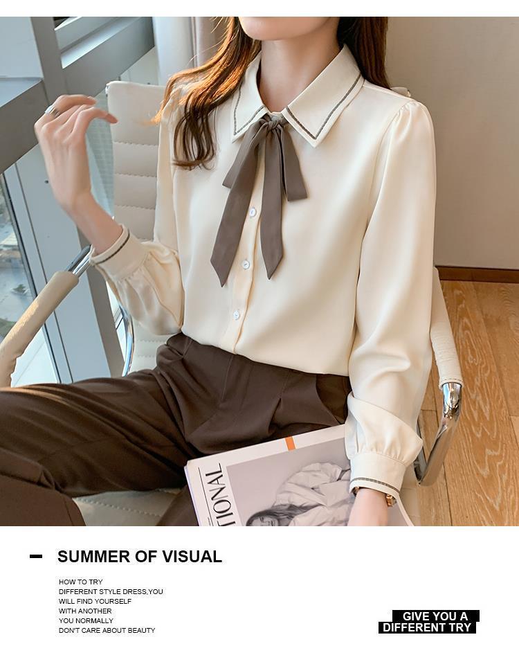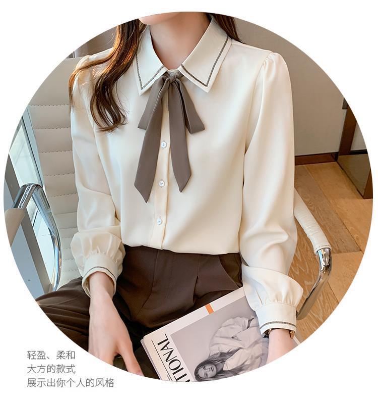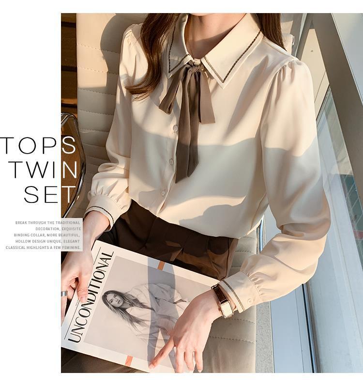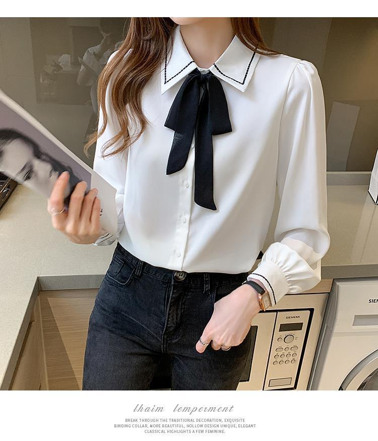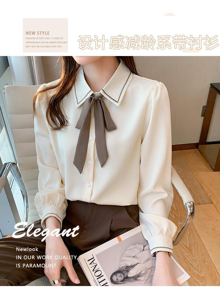 시폰 셔츠 여성 디자인 센스 의상 가을 2024 새로운 트렌디 긴 소매 패션 세련된 작은 셔츠 최고 감각스토어 가기