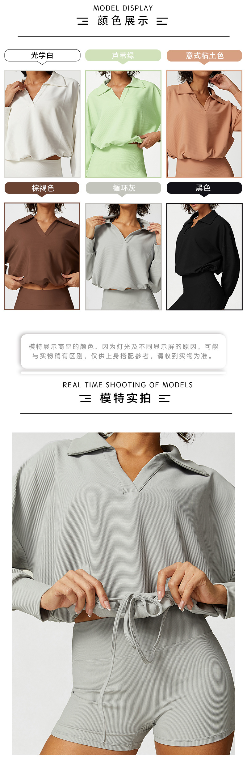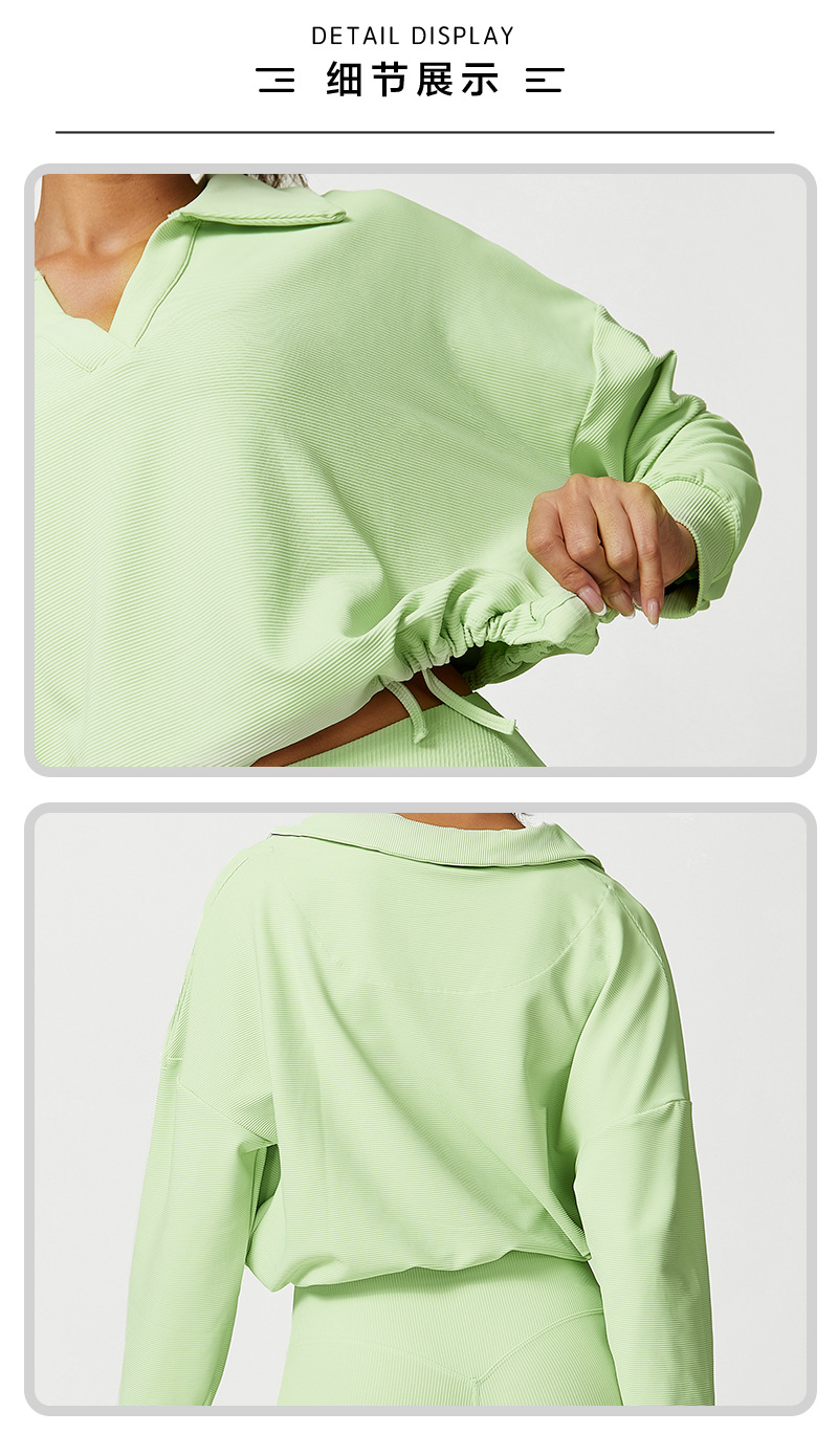 유럽과 미국의 새로운 3 차원 두꺼운 나사 옷깃 긴 소매 스웨터 야외 스포츠 느슨한 drawstring 긴 소매 요가 의류스토어 가기