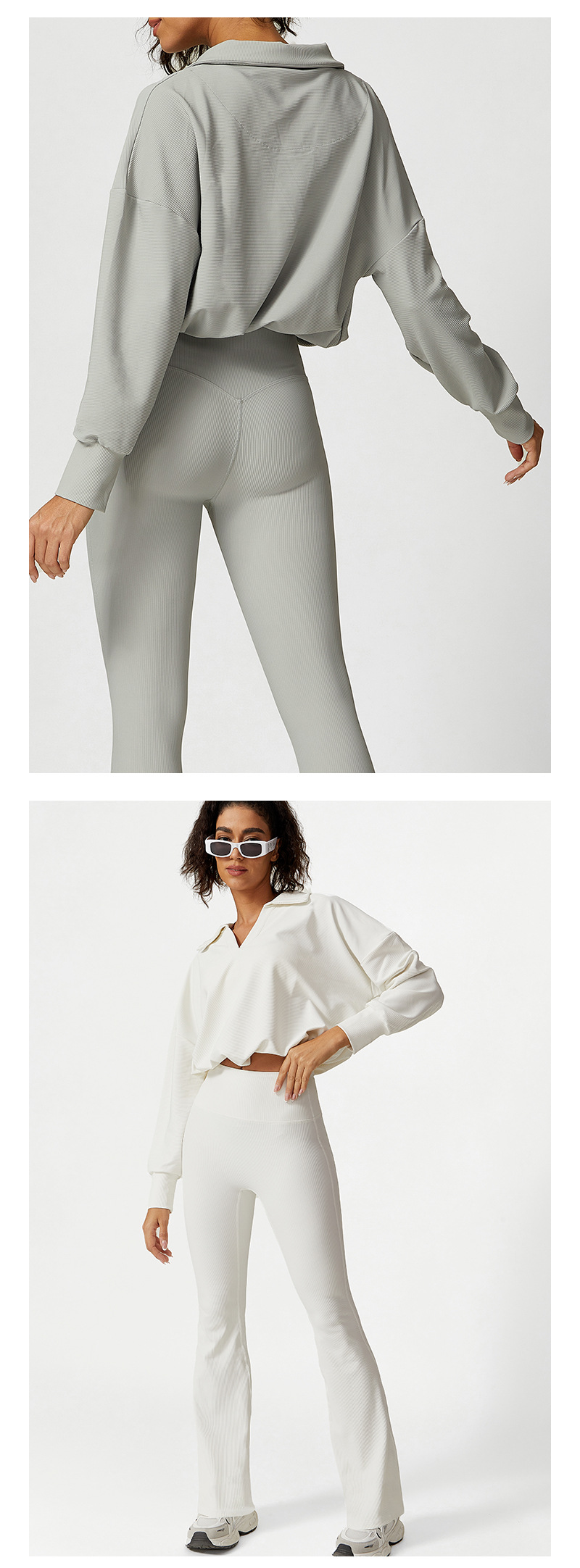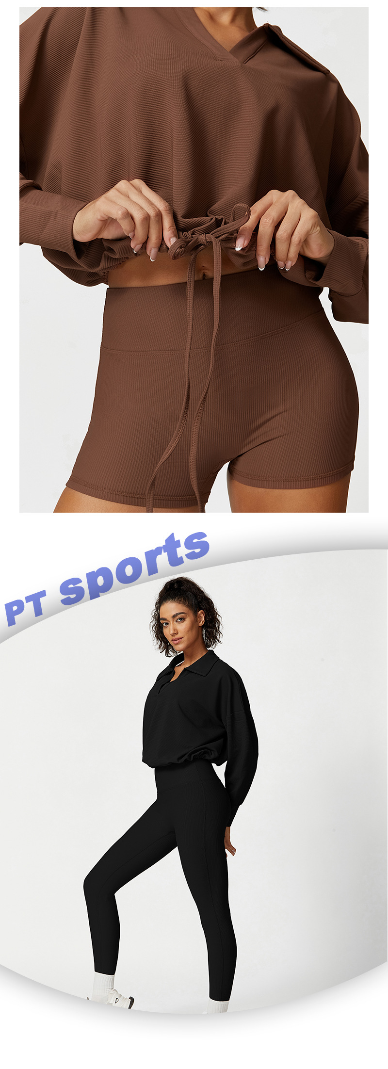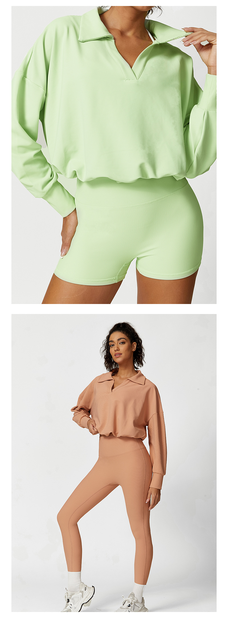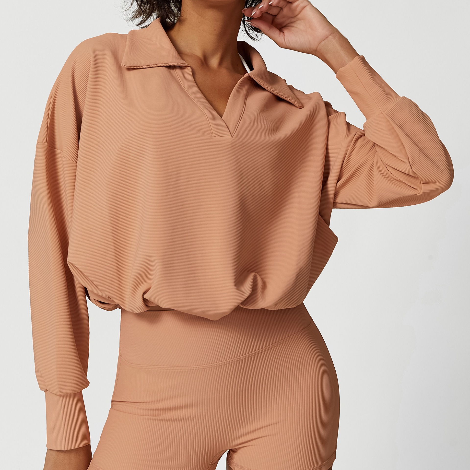 유럽과 미국의 새로운 3 차원 두꺼운 나사 옷깃 긴 소매 스웨터 야외 스포츠 느슨한 drawstring 긴 소매 요가 의류