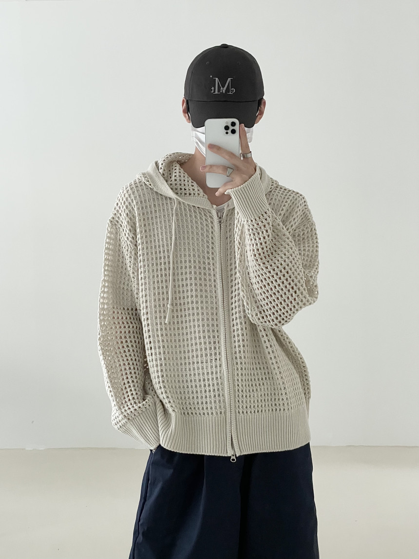 가을 남자 중공 재킷 카디건 에어컨 의류 긴 소매 선스크린 탑 한국 스타일의 트렌디 니트 스웨터