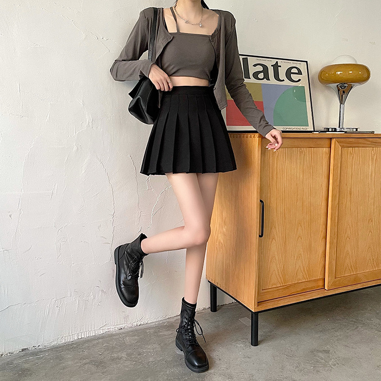 국경 간 뜨거운 바지 여성의 2024 단색 주름 치마 여성의 여름 높은 허리 학생의 대학 스타일 치마 지퍼 라이닝스토어 가기