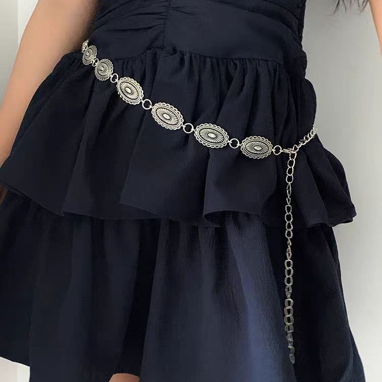 빈티지 간단한 허리 체인 액세서리 금속 체인 벨트 여자 올 매치 하이 엔드 원피스 바지 얇은 벨트